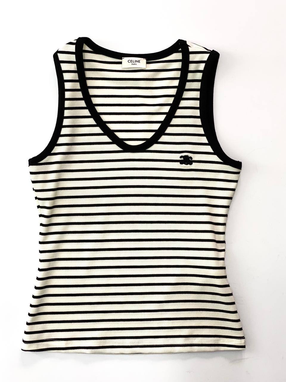 Топ Celine LUX-50258 — это стильный и универсальный элемент женского гардероба, выполненный в классическом черно-белом полосатом дизайне. Он идеально подходит для создания как повседневных, так и более элегантных образов, дополняя джинсы, юбки или шорты.