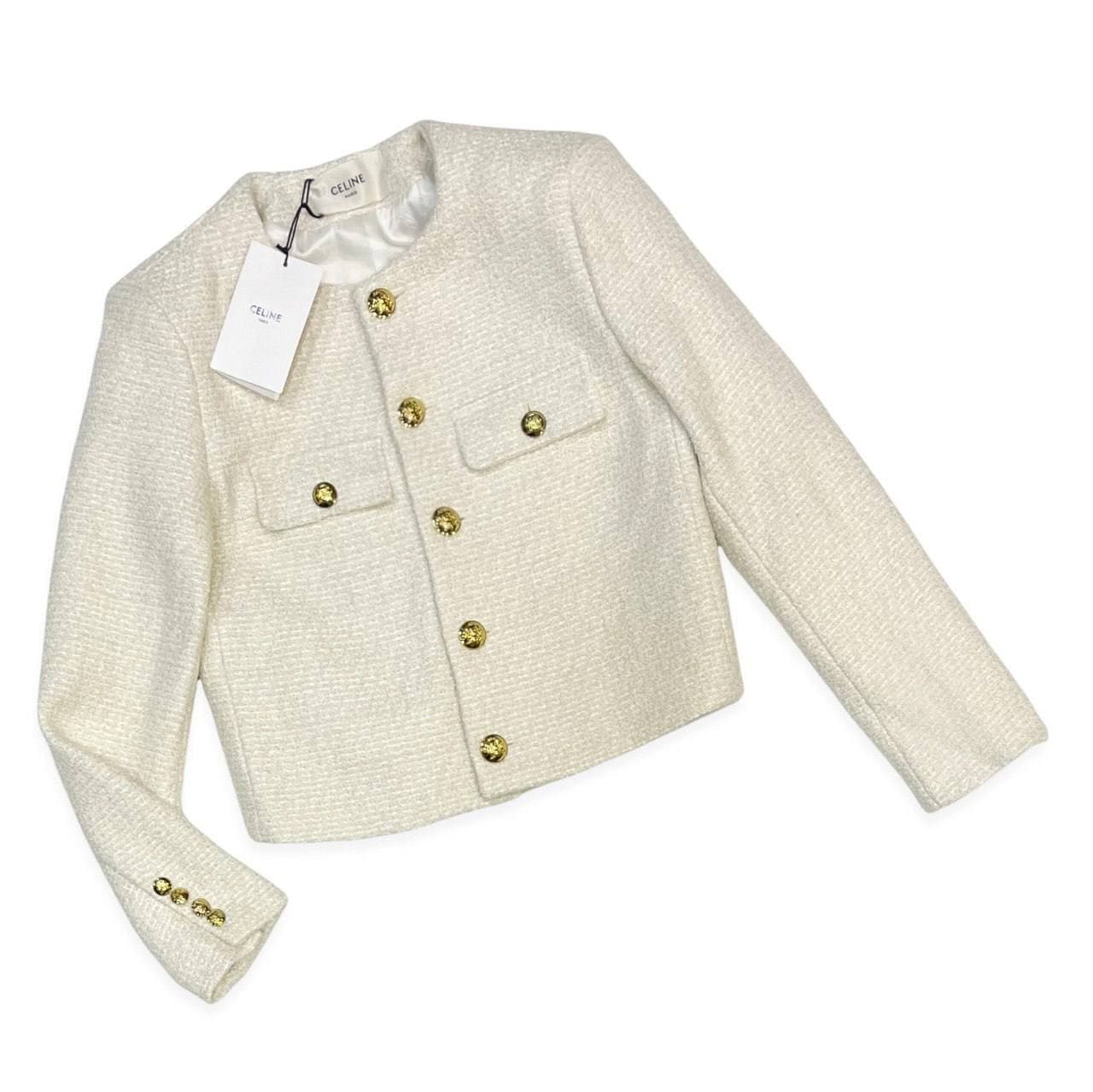 Элегантный жакет Celine LUX-57420 выполнен в классическом стиле, идеален для создания изысканных образов. Этот короткий жакет с круглым вырезом и золотистыми пуговицами добавит вашему стилю нотку роскоши. Благодаря своему дизайну, он легко сочетается как с повседневной, так и с вечерней одеждой.