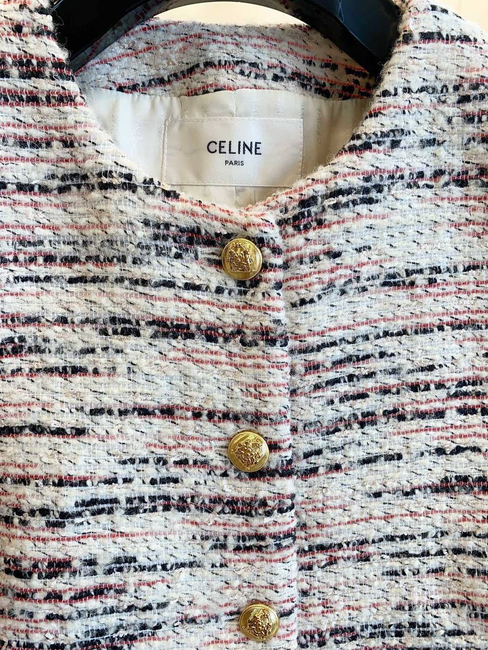 Жакет Celine LUX-97096 — это элегантный предмет гардероба от известного бренда. Жакет выполнен в классическом стиле, сочетает в себе изысканность и современность. Его текстура создает интересный визуальный эффект, что делает его подходящим для различных образов.