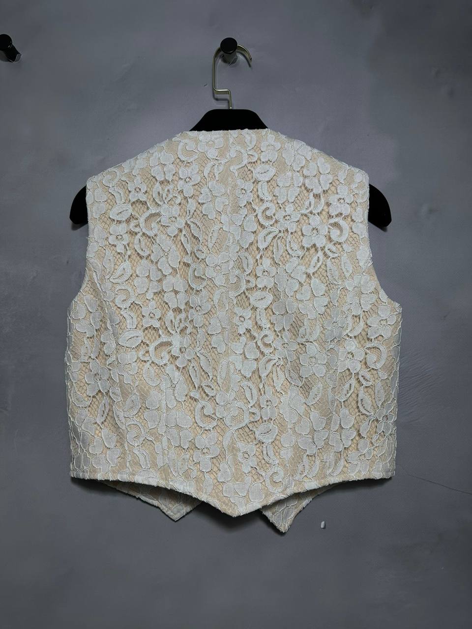 Жилет Celine LUX-99043 представляет собой изысканный предмет гардероба, который сочетает в себе элегантность и утонченность. Жилет выполнен из нежного кружева белого цвета, дополнен золотистыми пуговицами. Идеально подходит для создания романтичных и женственных образов, которые подчеркнут вашу индивидуальность.