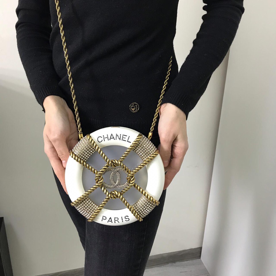 Сумка женская Chanel СЖ-471 — это уникальный аксессуар, выполненный в форме спасательного круга, который станет ярким акцентом любого образа. Дизайн изделия сочетает в себе роскошь и оригинальность, что характерно для бренда Chanel. Эта модель идеально подойдет для тех, кто ценит эксклюзивность и стремится выделиться из толпы, привнося в свой стиль нотку игривости и морской тематики.