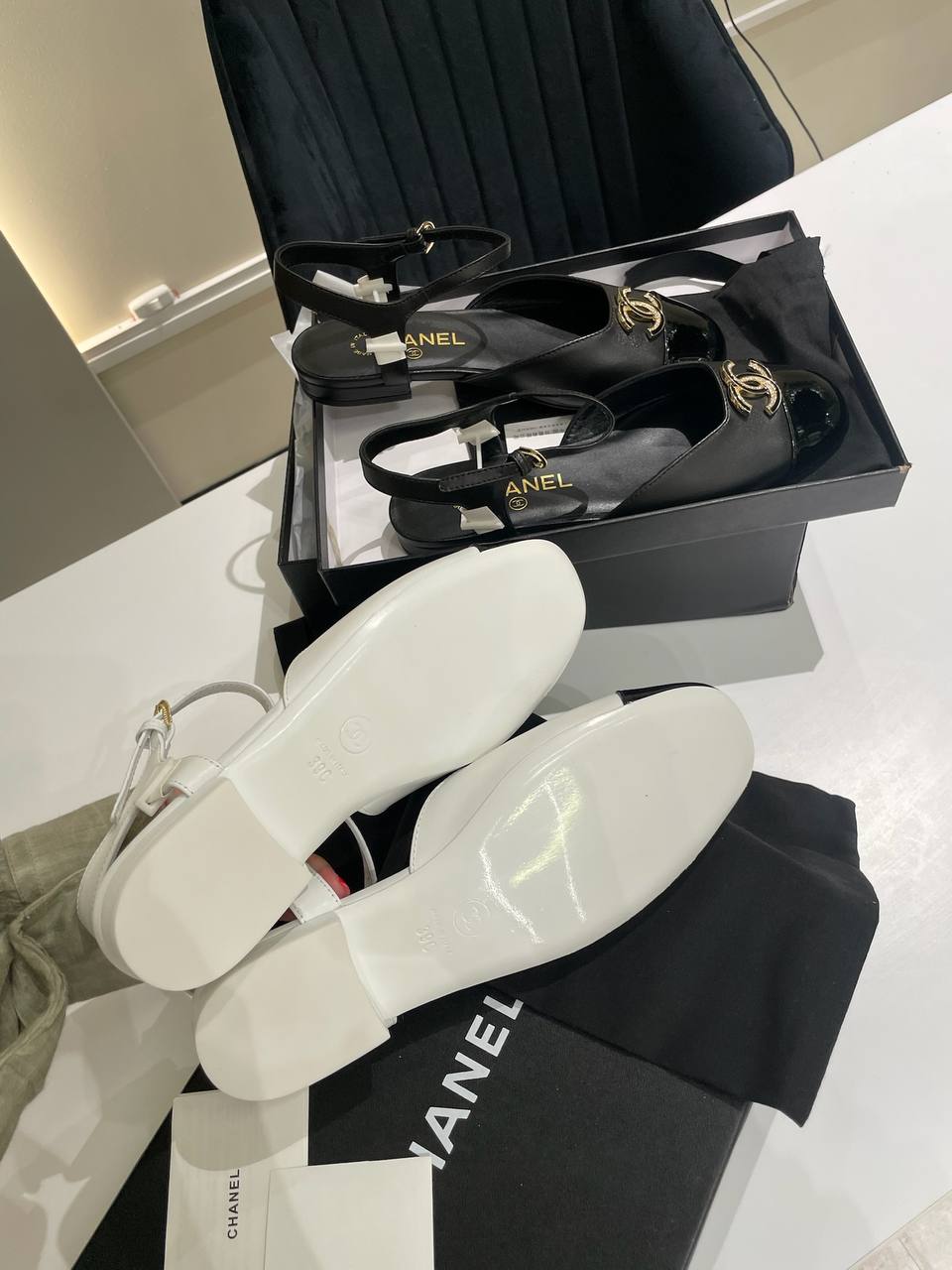 Балетки Chanel LUX-118179 — это воплощение элегантности и комфорта. Белые балетки с черными носками и золотистой фурнитурой подойдут для создания стильных образов в различных ситуациях. Модель выполнена в классическом стиле, подчеркивающем изысканный вкус обладательницы.