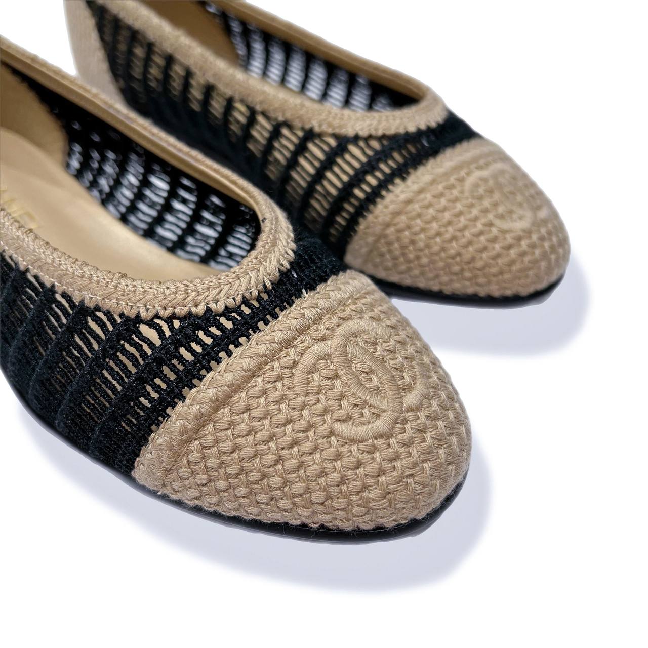 Балетки Chanel LUX-119740 — это воплощение элегантности и стиля. Они сочетают в себе черный сетчатый верх с деталями из ткани и бежевой отделкой, создавая утонченный образ. Балетки подойдут как для повседневной носки, так и для создания более нарядных ансамблей.