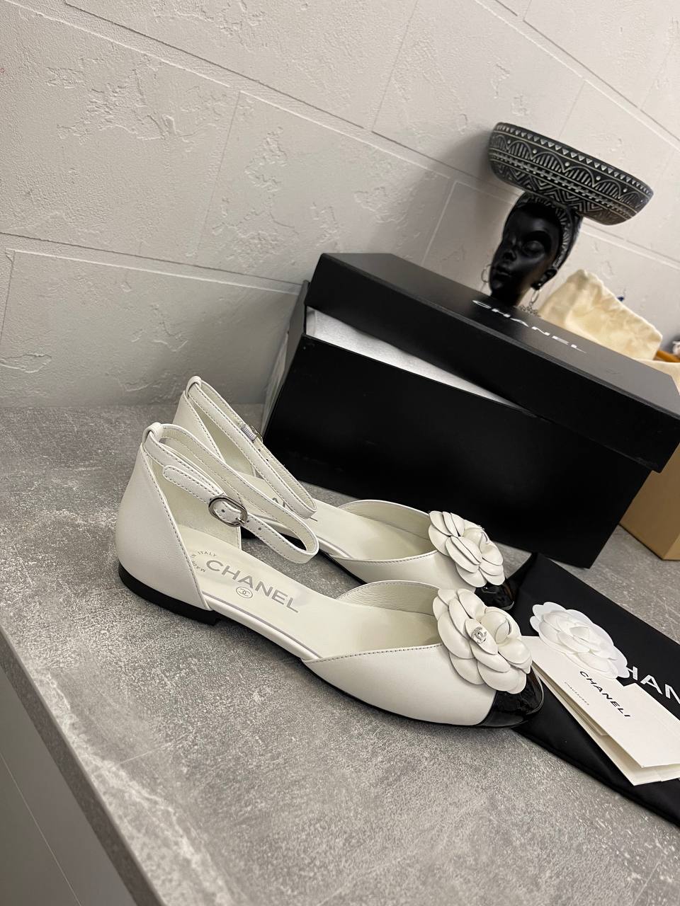Балетки Chanel LUX-105020 - это элегантная обувь в стиле балеток, выполненная в белом цвете с черным мыском, украшенная объемными цветами на носке. Эти балетки идеально подойдут для создания утонченного и женственного образа, сочетая в себе классику и изысканность.