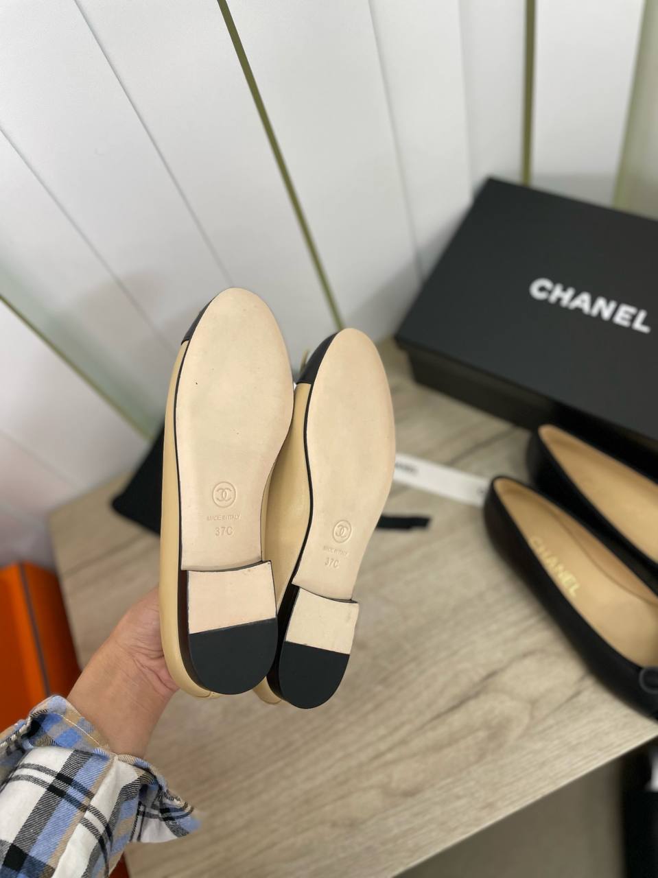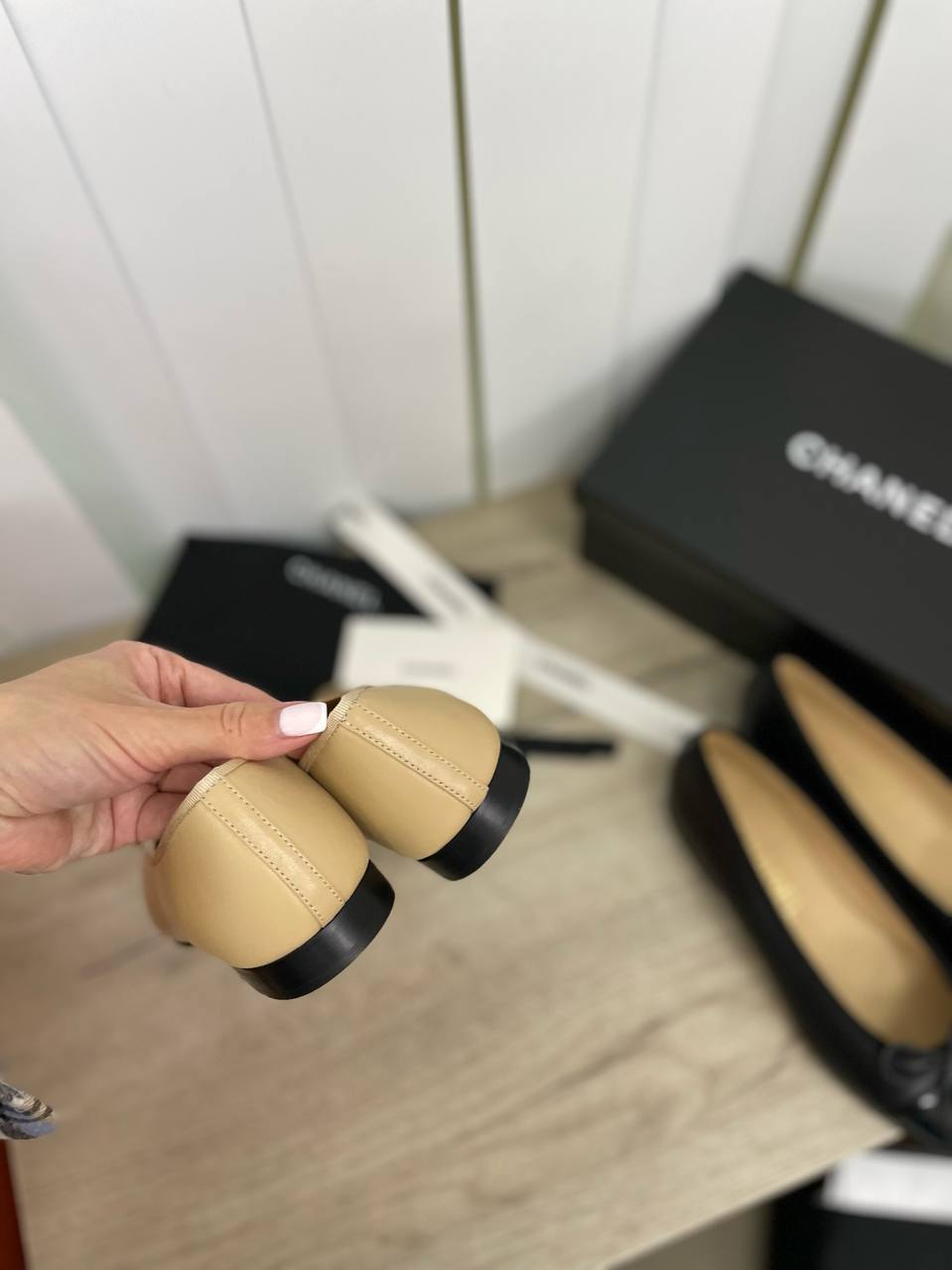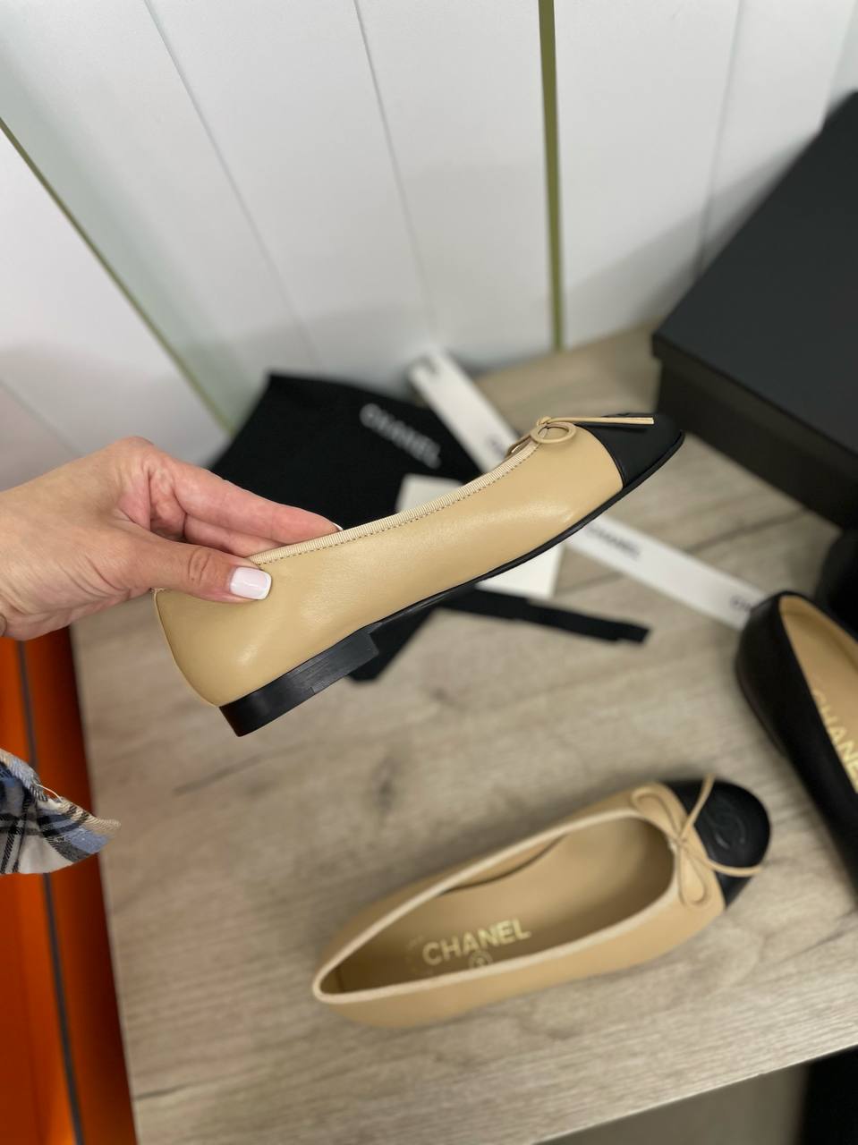 Балетки Chanel LUX-93255 - это изысканная модель, сочетающая в себе классический стиль и современный шик. Эти балетки выполнены в бежевом цвете с черными носками, создавая контрастный и элегантный вид. Они идеально подойдут для создания как повседневных, так и более формальных образов.