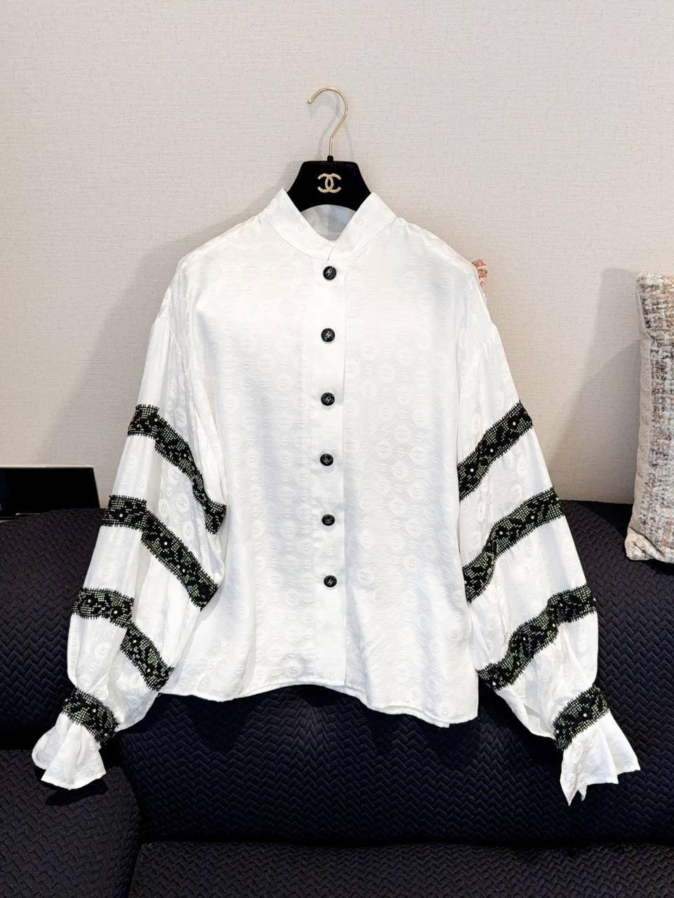 Блузка Chanel LUX-116845 – элегантный предмет гардероба от известного бренда. Блузка выполнена в белом цвете с черными кружевными деталями, что придает ей изысканный и утонченный вид. Идеально подойдет для создания стильных образов в различных ситуациях.