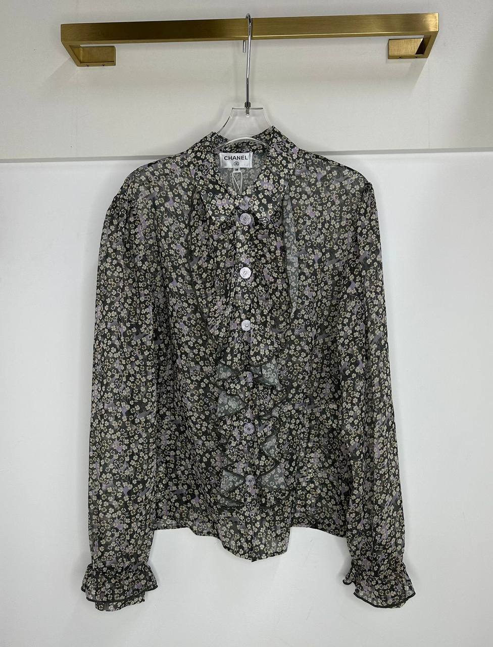 Блузка Chanel LUX-118637 — это изысканная блузка от известного бренда Chanel, выполненная в романтичном стиле. Блузка черного цвета с мелким цветочным принтом, украшена воланами и пуговицами, придающими ей женственность и утонченность. Эта блузка идеально подойдет для создания элегантных образов.