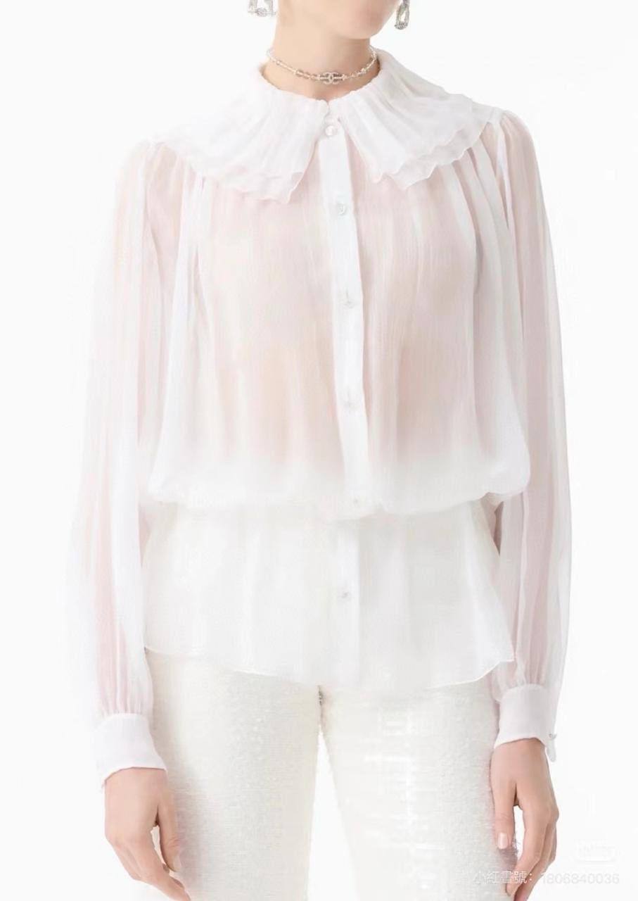 Блузка Chanel LUX-119293 представляет собой элегантную блузку классического стиля. Нежный белый цвет и полупрозрачная текстура создают женственный и утонченный образ. Идеально подходит для создания как повседневных, так и нарядных образов.