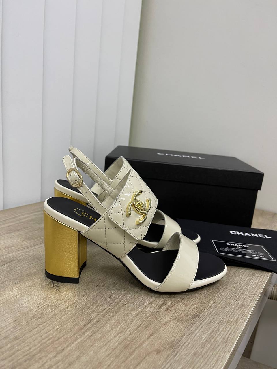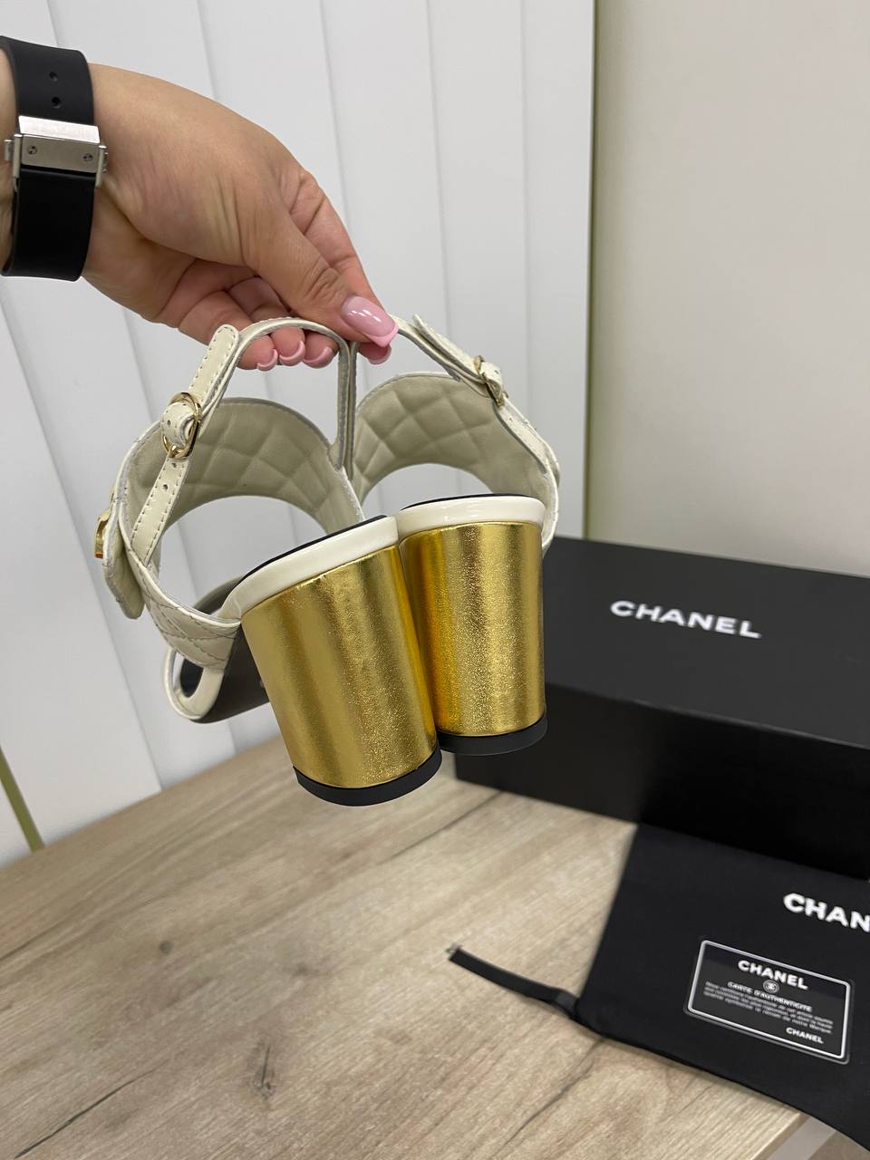 Босоножки Chanel LUX-92443 - это элегантные босоножки от известного бренда Chanel. Они выполнены в кремовом цвете с золотистыми элементами, что придает им изысканный вид. Босоножки идеально подойдут для создания стильных образов на различные мероприятия.