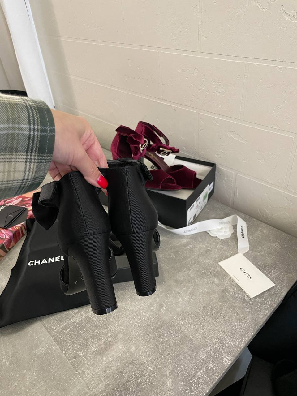 Босоножки Chanel LUX-114101 – это воплощение элегантности и стиля от известного бренда. Черные босоножки на высоком каблуке с изящным дизайном и бантиком станут отличным дополнением к вашему образу. Идеальны для особых случаев и вечерних выходов.