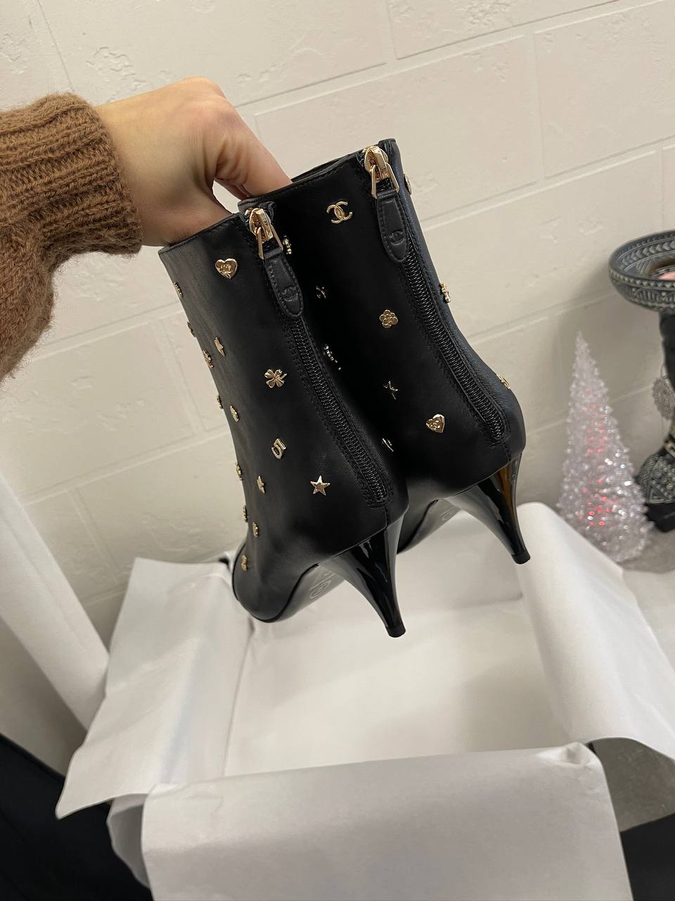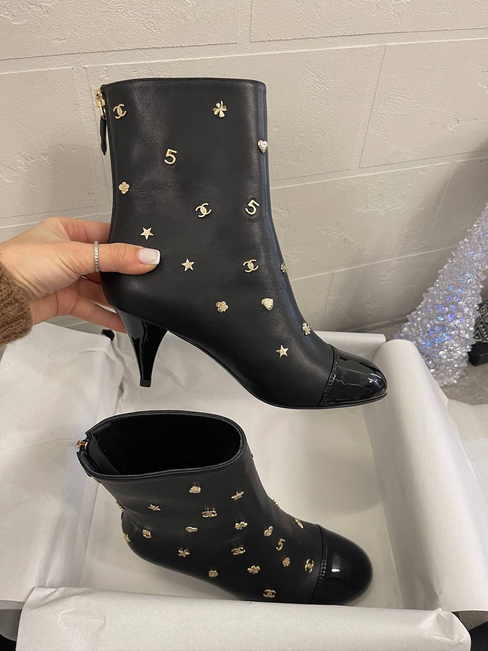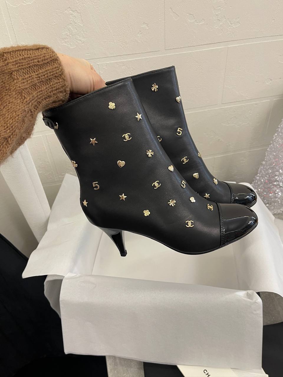 Ботильоны Chanel LUX-99887 – это изысканная обувь, сочетающая в себе элегантность и утонченность. Эти ботильоны выполнены в классическом стиле с акцентом на детали: черные, с лакированным носком и оригинальным декором. Они идеально подойдут для создания стильных и запоминающихся образов.