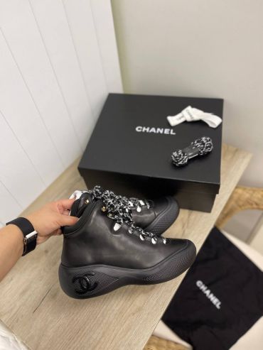 Ботинки Chanel LUX-95608 – это стильные ботинки в фирменном стиле модного дома, выполненные в темно-коричневом цвете с черными глянцевыми вставками. Ботинки имеют стеганую текстуру и круглые носы. Идеально подойдут для создания как повседневных, так и более элегантных образов.
