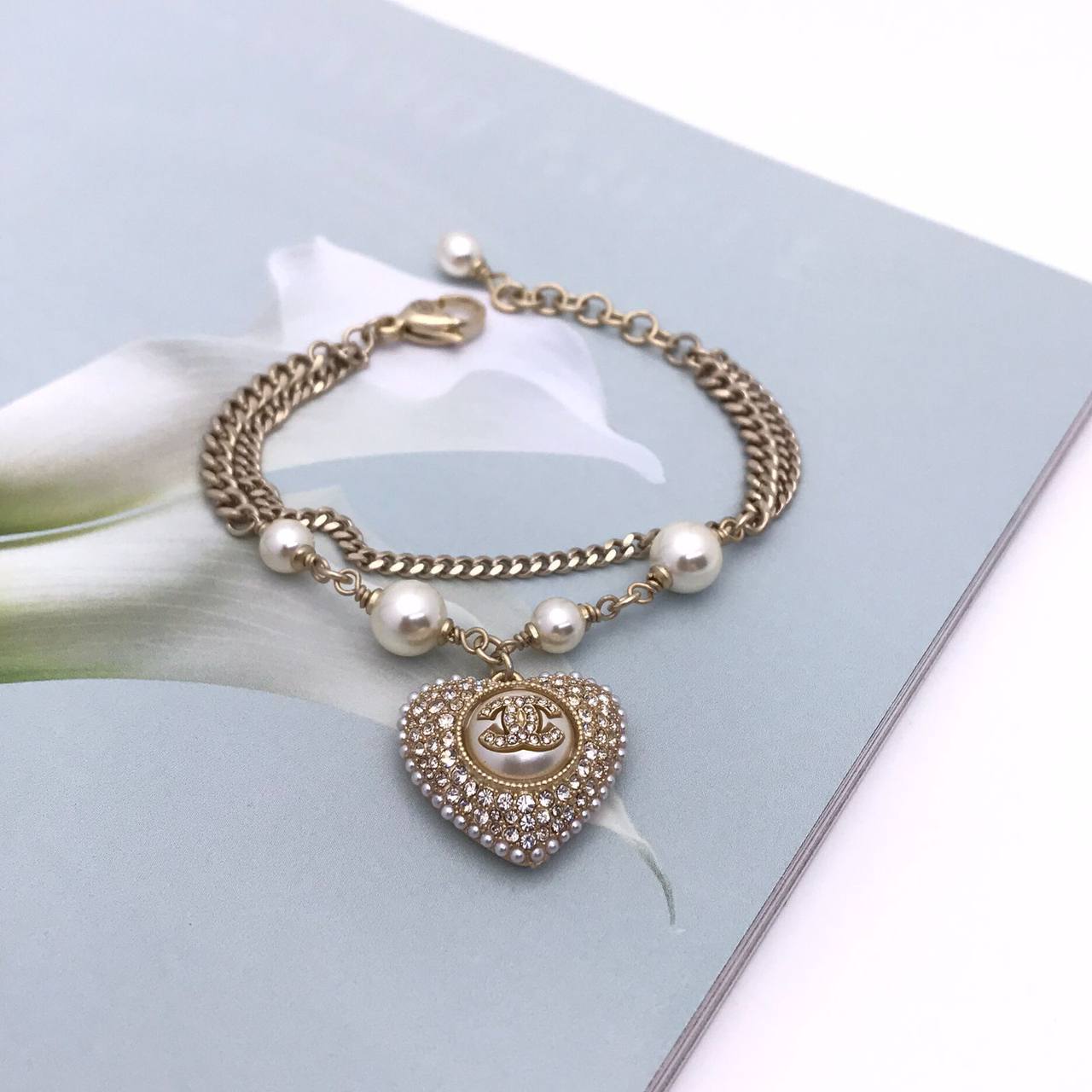 Браслет Chanel LUX-77523 представляет собой изысканное украшение, сочетающее в себе элегантность и роскошь. Этот браслет выполнен в золотистом цвете с подвеской в форме сердца, украшенной кристаллами и жемчужинами. Он идеально дополнит любой образ, придавая ему шарм и изысканность.