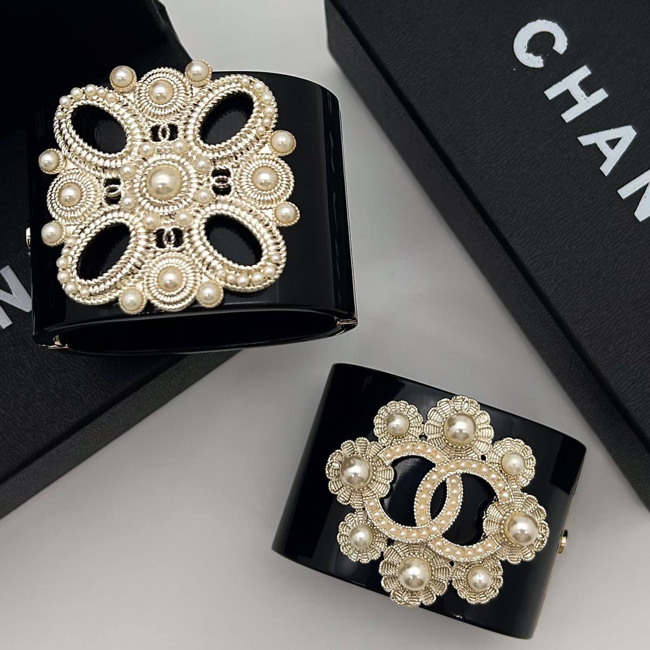 Браслет Chanel LUX-100411 представляет собой элегантное украшение в виде широкого браслета, выполненного в чёрном цвете с узором из жемчужин и страз. Браслет обладает глянцевой текстурой и предназначен для создания изысканного образа. Этот аксессуар станет прекрасным дополнением к вечернему наряду.