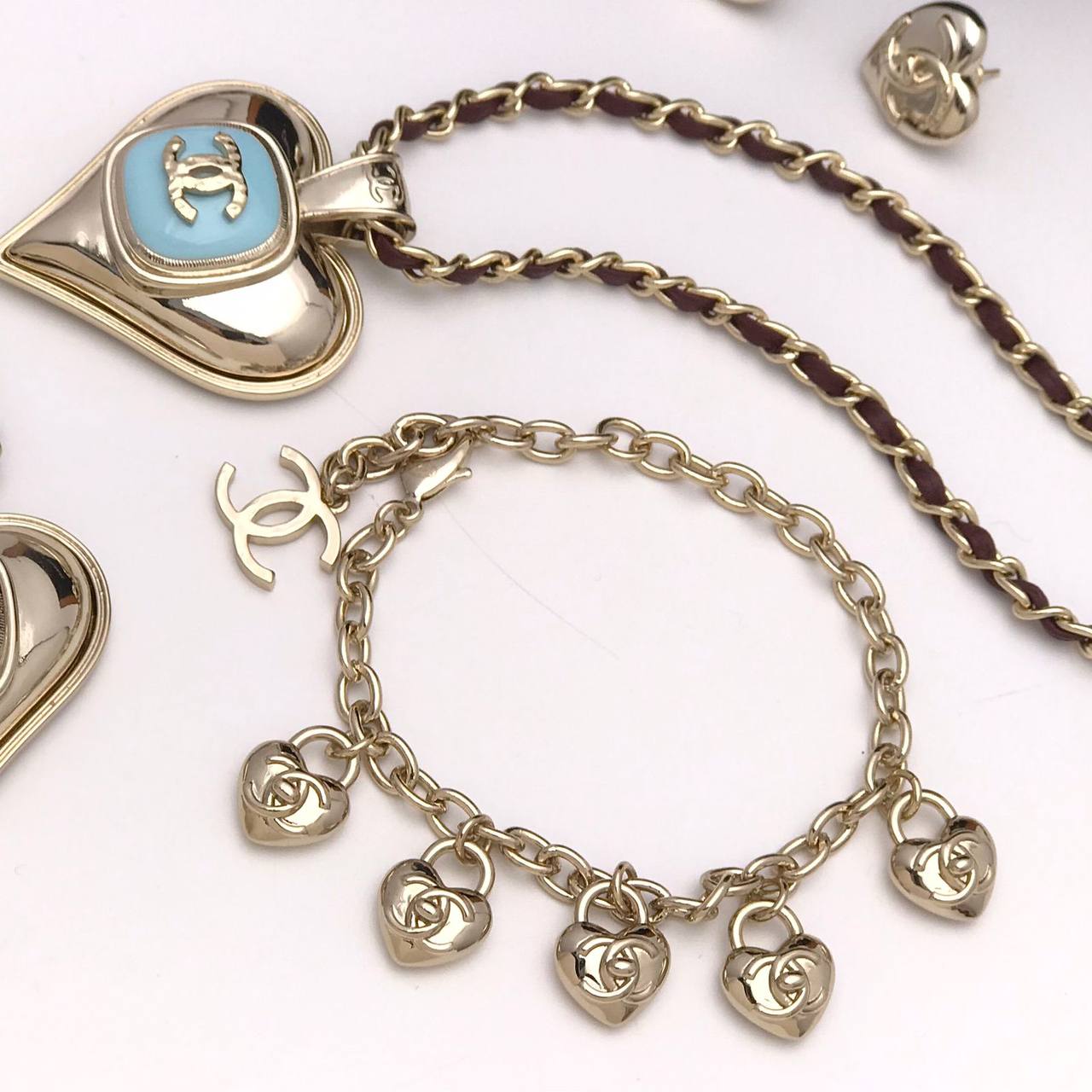 Браслет Chanel LUX-89019 представляет собой элегантное украшение в золотистом цвете, сочетающее в себе изысканный дизайн и узнаваемый стиль бренда. Браслет украшен подвесками в форме сердец, что придает ему романтичный вид. Этот аксессуар станет прекрасным дополнением к любому образу.