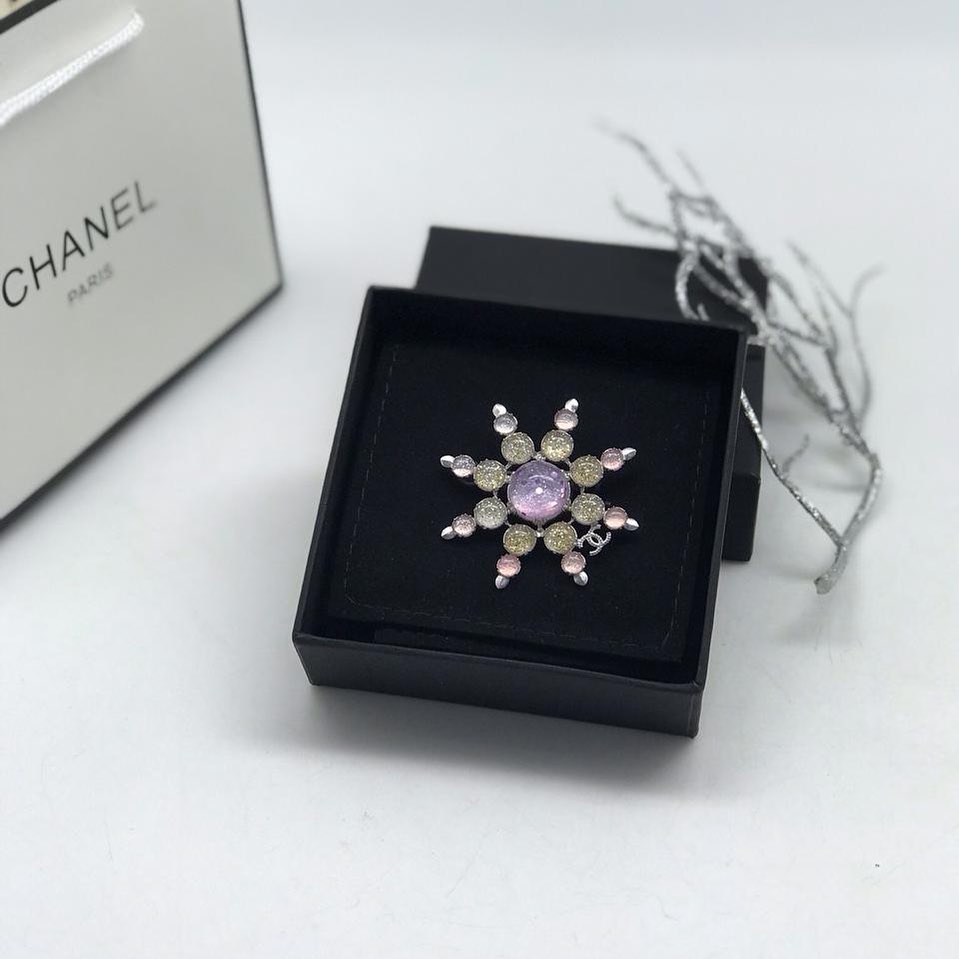 Эта изысканная брошь Chanel LUX-16511 выполнена в дизайне, напоминающем звезду или цветок, и украшена сверкающими кристаллами различных оттенков. Центральный элемент представлен крупным прозрачным камнем нежно-розового цвета, окруженным более мелкими кристаллами пастельных тонов. Аккуратное исполнение и узнаваемый логотип Chanel придают изделию особый шик.