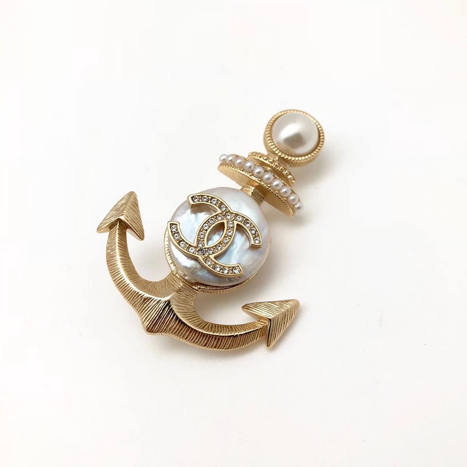 Элегантная брошь Chanel LUX-21792 – это изысканный аксессуар, выполненный в морской тематике. Дизайн броши сочетает в себе классические элементы бренда Chanel с символом якоря, украшенным жемчугом и кристаллами. Эта брошь станет стильным дополнением к вашему образу.