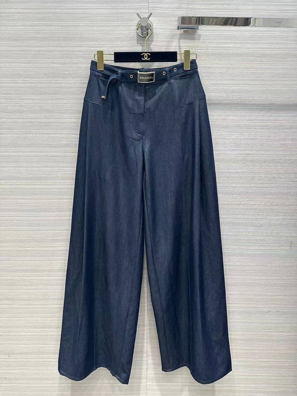 Брюки Chanel LUX-93384 — это стильные брюки-палаццо из денима. Темно-синий цвет, широкий крой и высокая посадка придают им современный и элегантный вид. Эти брюки идеально подойдут для создания как повседневных, так и более формальных образов.