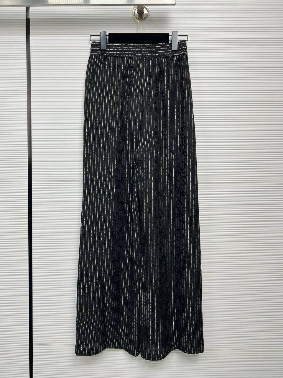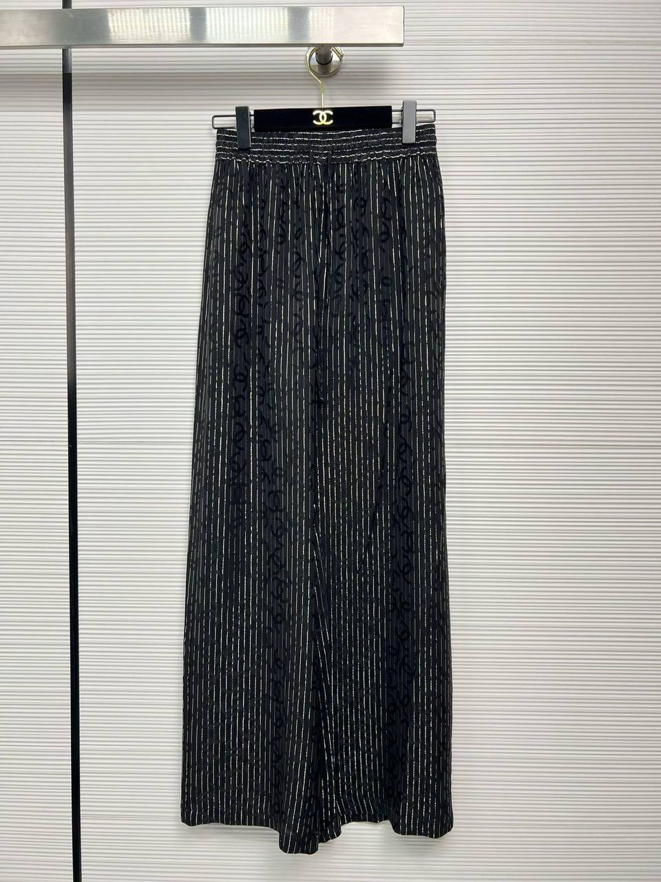Брюки Chanel, LUX-114907 - это элегантные брюки прямого кроя, выполненные в классическом стиле. Они выполнены в черном цвете с тонкими серебристыми полосами, создающими эффектный контраст. Брюки идеально подойдут для создания как повседневных, так и более нарядных образов.