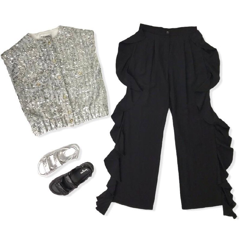 Брюки Chanel LUX-51487 — это стильное решение для современной женщины, ценящей элегантность и оригинальность. Модель отличается эффектным дизайном с объемными оборками по всей длине, что придает образу динамичность и изысканность. Классический черный цвет и широкий крой делают эти брюки универсальными, позволяя создавать разнообразные модные комбинации.