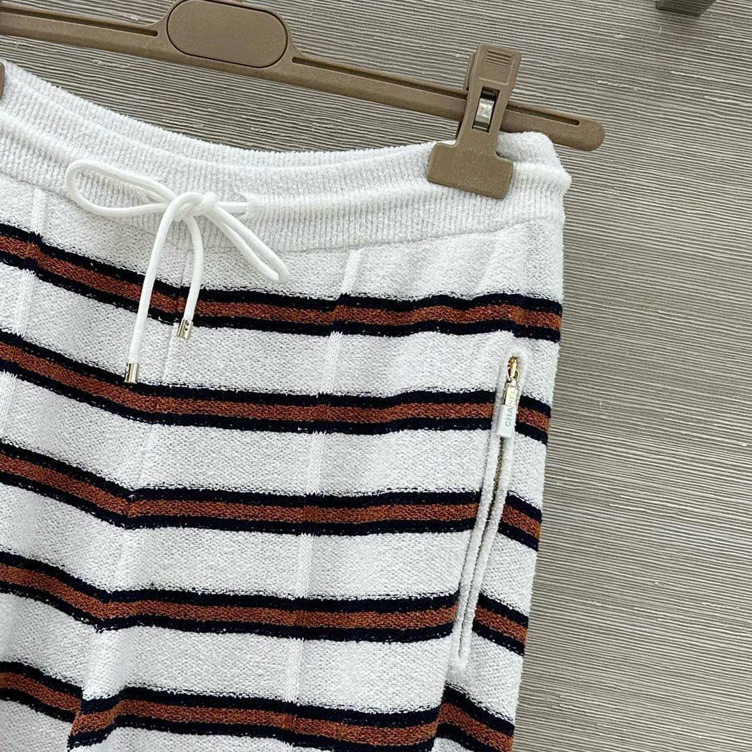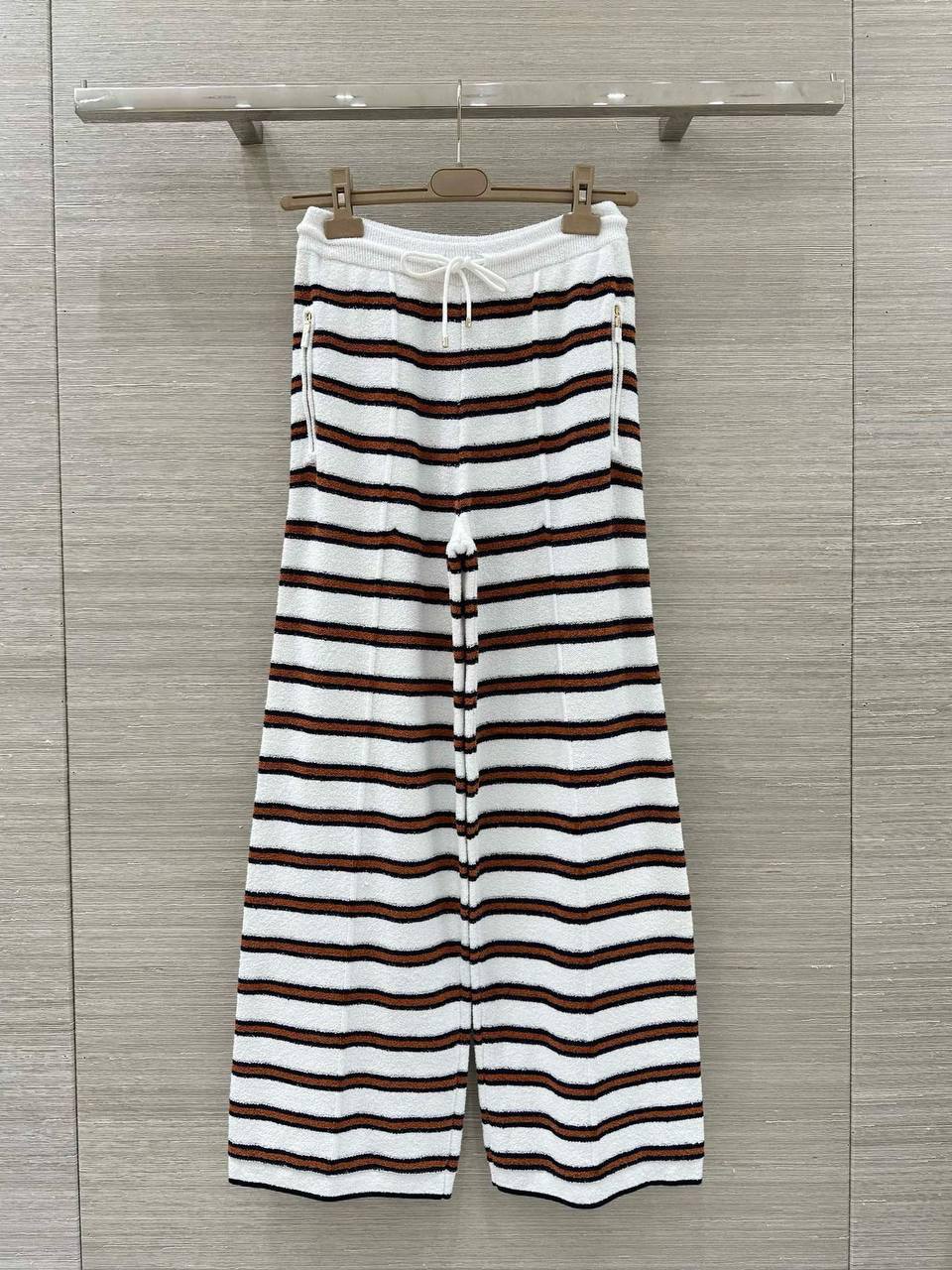 Брюки Chanel LUX-128356 – стильная и современная модель, сочетающая в себе комфорт и элегантность. Брюки выполнены в полоску и имеют прямой крой, что делает их отличным выбором для создания различных образов.