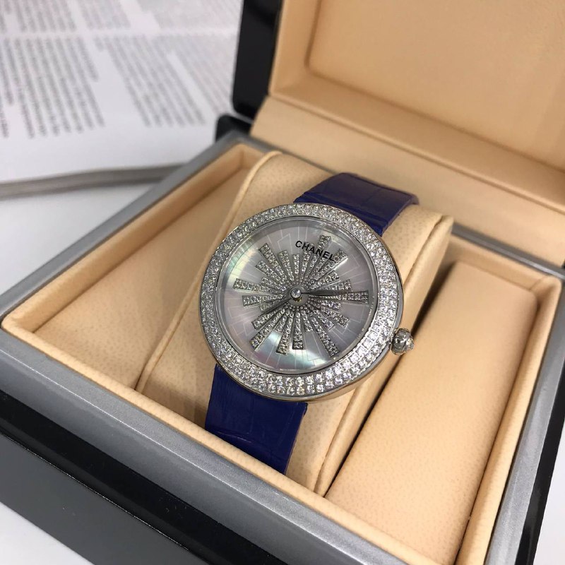 Часы Chanel LUX-54671 — это воплощение элегантности и утонченности, созданные для истинных ценителей роскоши. Изящный дизайн с инкрустацией цирконами и перламутровым циферблатом, напоминающим сияющую звезду, делают эту модель настоящим произведением искусства. Синий ремешок из натуральной кожи добавляет образу изысканности и завершенности.