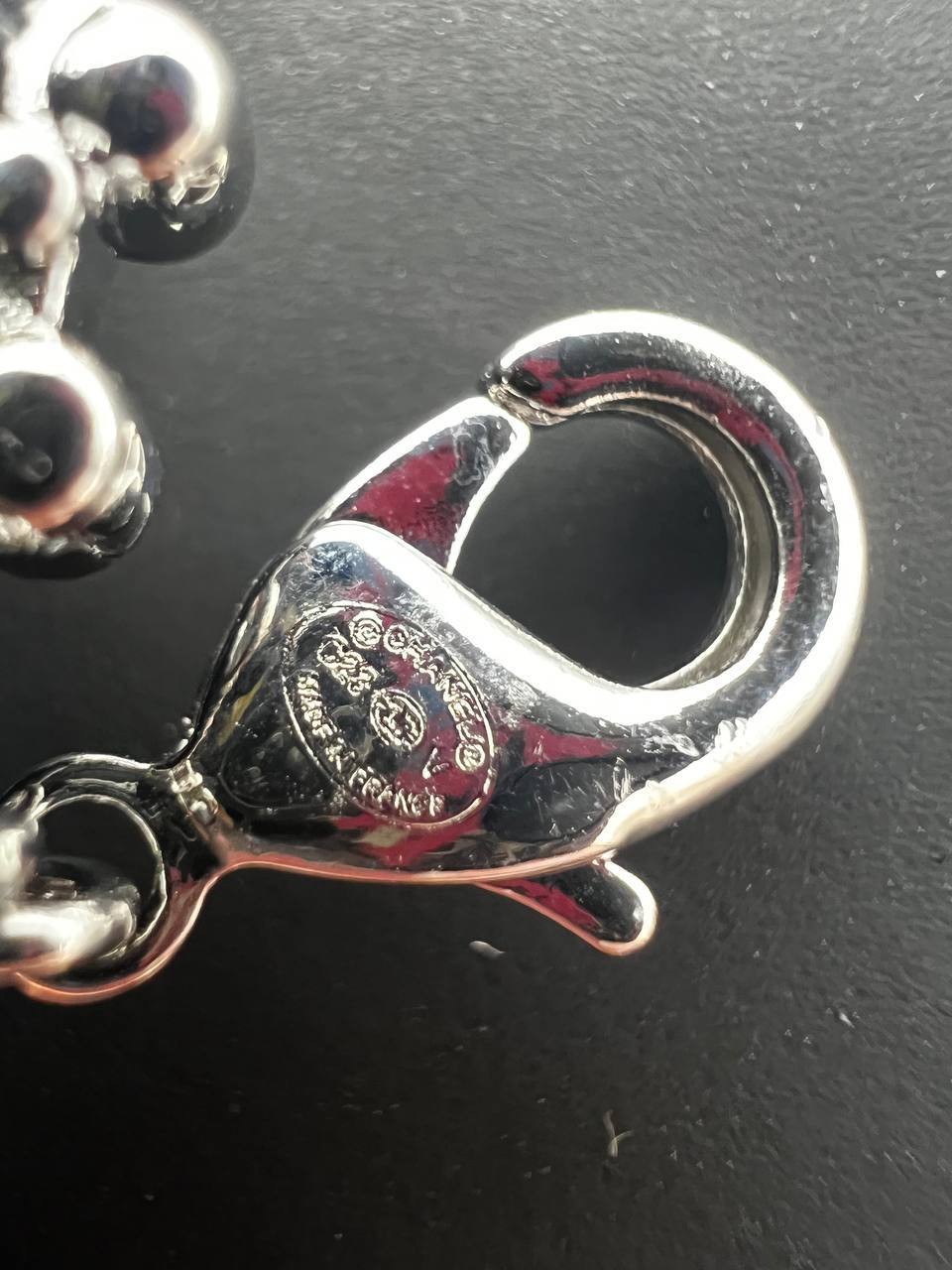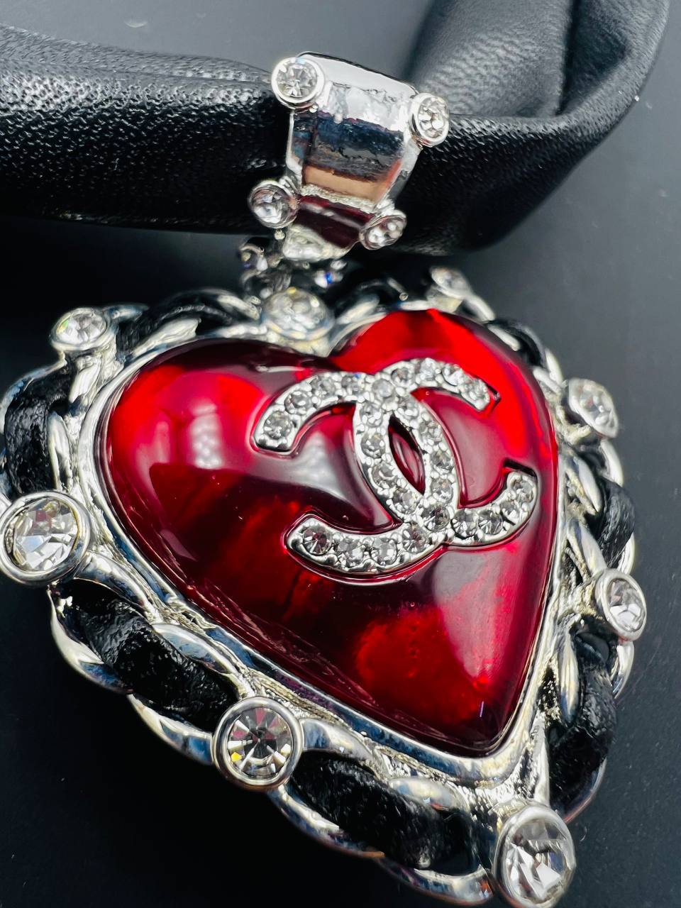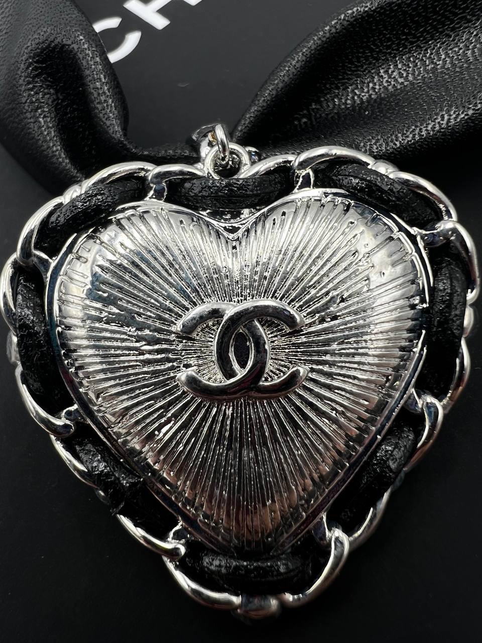 Чокер Chanel LUX-103820 представляет собой элегантное украшение, выполненное в классическом стиле французского дома моды. Чокер выполнен в черном цвете с подвеской в форме сердца, украшенной логотипом бренда и декоративными элементами. Идеально подойдет для добавления изысканности в любой образ, будь то повседневный или вечерний.