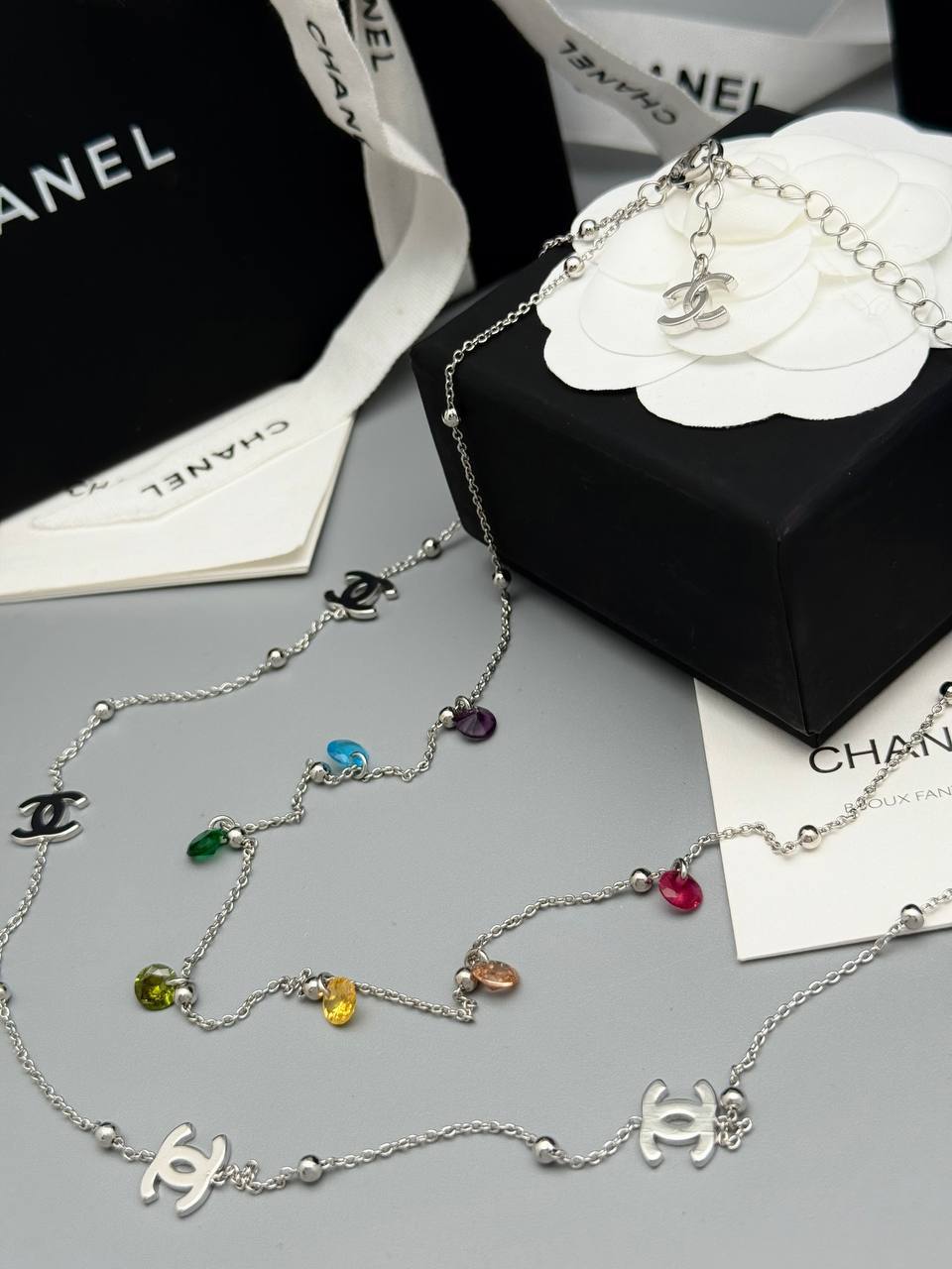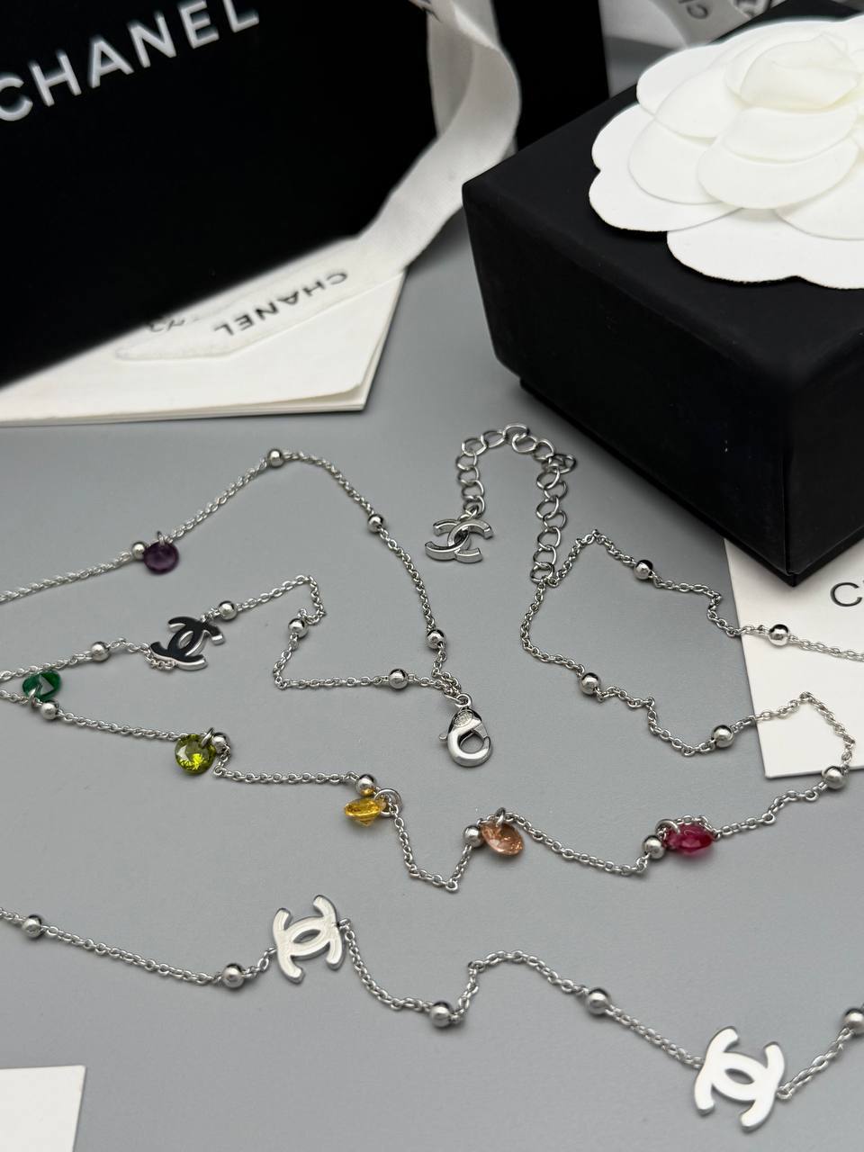 Этот изысканный чокер Chanel станет прекрасным дополнением к вашему образу, подчеркивая индивидуальность и безупречный вкус. Аксессуар выполнен в элегантном стиле, сочетающем в себе классику и современные тенденции.