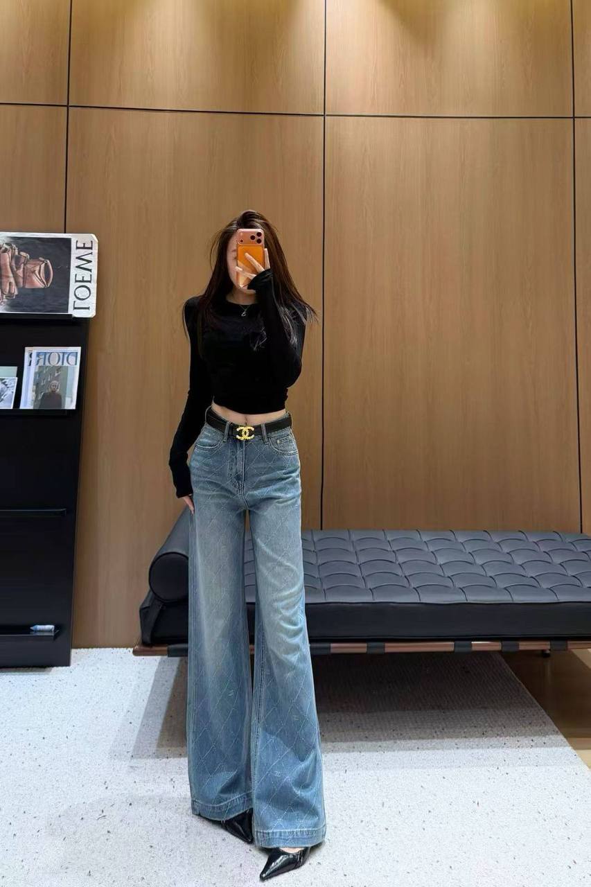 Джинсы Chanel LUX-130445 выполнены в классическом джинсовом стиле с широкими штанинами. Эта модель идеально подойдет для создания модных и непринужденных образов.