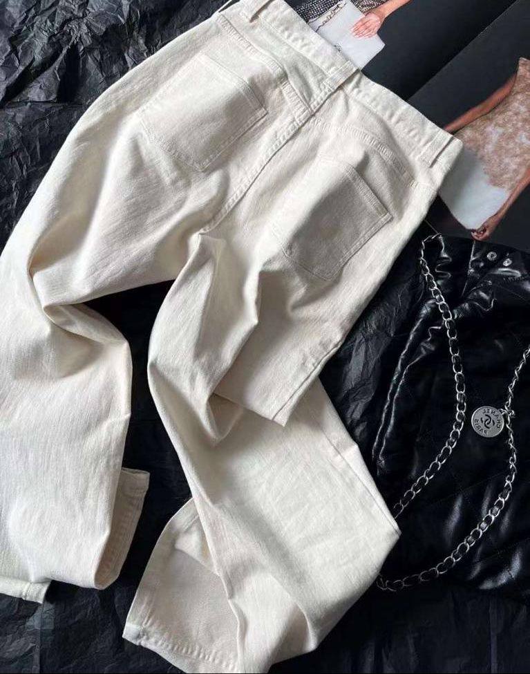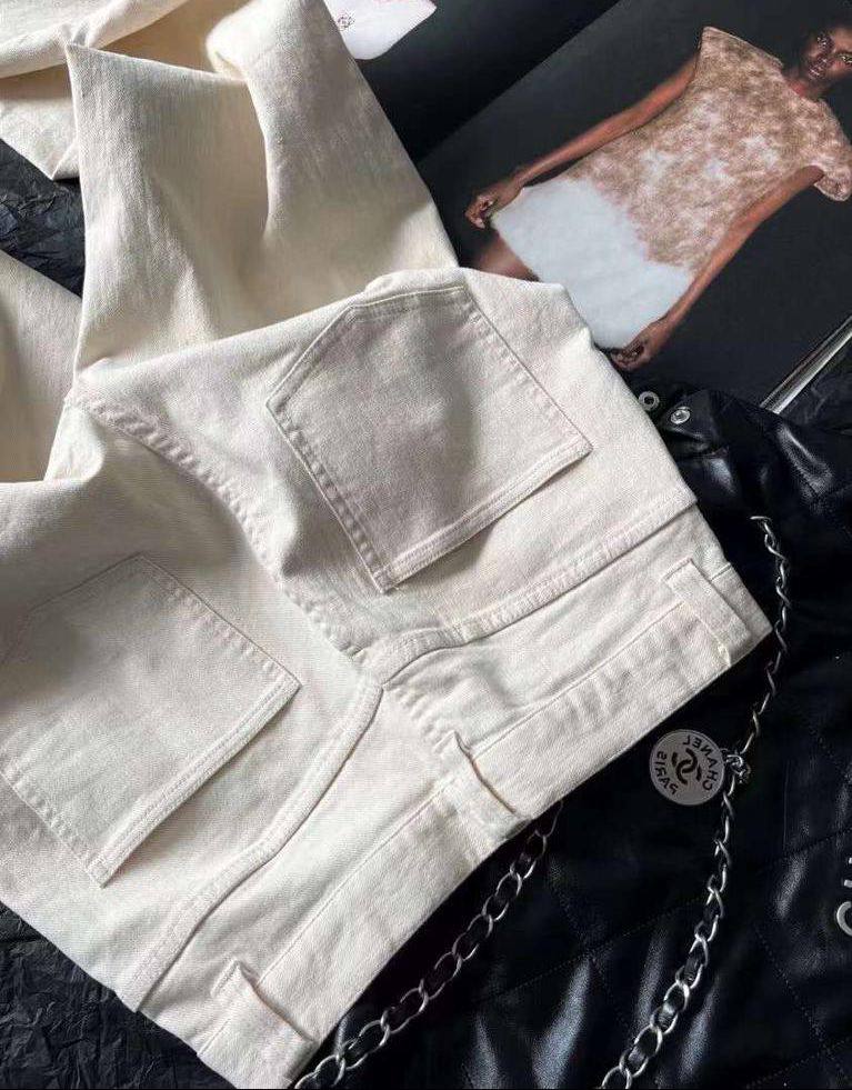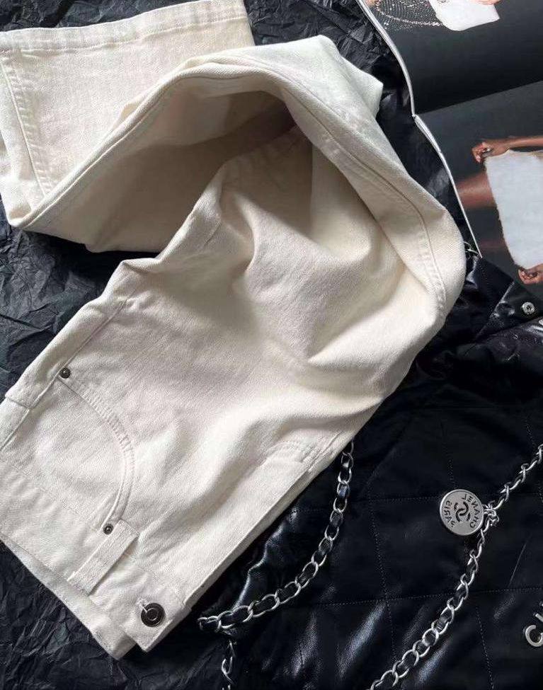 Джинсы Chanel LUX-84673 — это элегантные джинсы прямого кроя, выполненные в классическом стиле. Они представлены в молочном цвете, что делает их универсальным элементом гардероба. Джинсы подойдут для создания различных образов, от повседневных до более формальных.