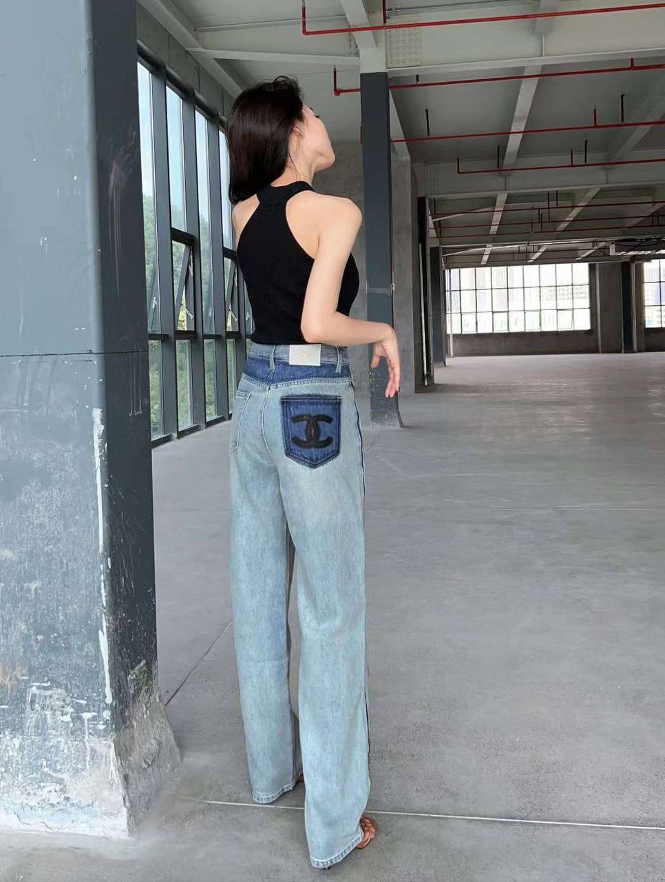 Джинсы Chanel LUX-91006 – это стильная модель в классическом стиле. Джинсы имеют прямой крой, светлый цвет с элементами потертостей, а также характерную для бренда декоративную вставку. Прекрасно подойдут для повседневной носки, дополняя любой образ.