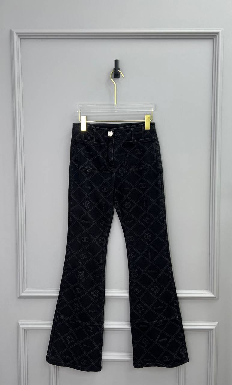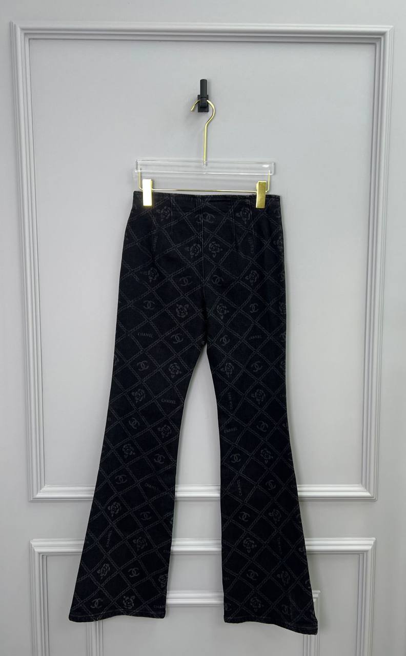 Джинсы Chanel LUX-94164 — это стильные расклешенные джинсы черного цвета с фирменным принтом. Данная модель выполнена в классическом стиле. Джинсы хорошо подойдут для создания как повседневных, так и более элегантных образов.