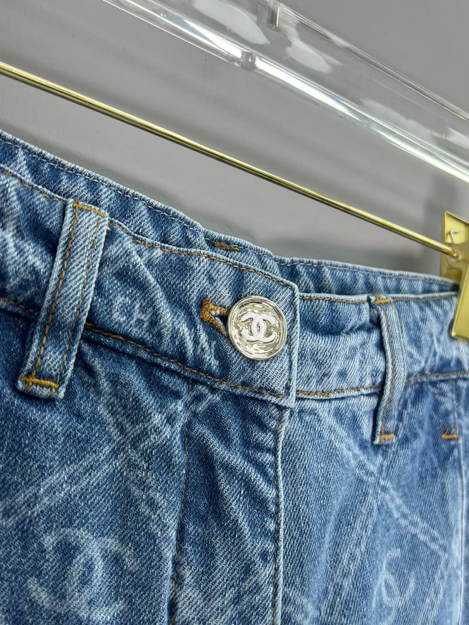 Джинсы Chanel LUX-94731 представляют собой стильный элемент гардероба от известного бренда. Это модель с широкими штанинами, выполненная в классическом джинсовом стиле. Джинсы имеют голубой цвет и узнаваемый узор.
