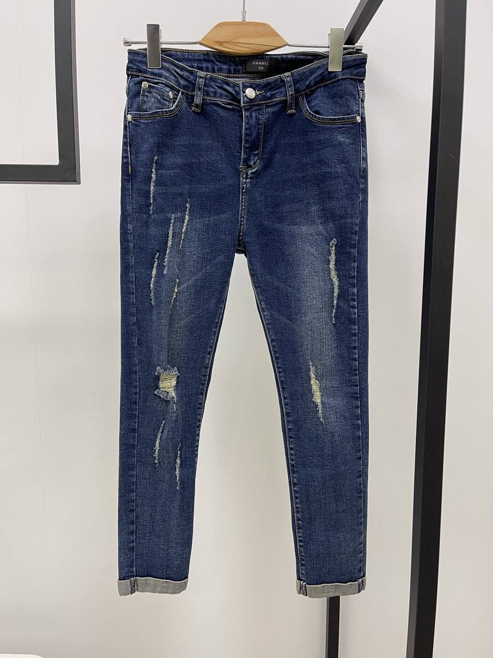 Джинсы Chanel LUX-54020 – это стильные и современные брюки, выполненные в синем цвете. Модель имеет зауженный крой и модные потертости, имитирующие естественный износ, а также декоративные разрывы, что придает им урбанистический вид. Эти джинсы прекрасно подойдут для создания повседневных образов в стиле casual.