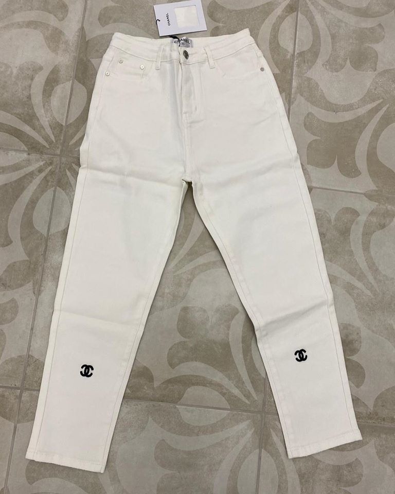 Эти женские джинсы Chanel LUX-30715 сочетают в себе классический стиль и современный комфорт. Белый цвет и прямой крой делают их универсальной основой для создания разнообразных образов, от повседневных до более элегантных. Небольшая вышивка логотипа Chanel на нижней части брючин добавляет изделию узнаваемости и роскоши.