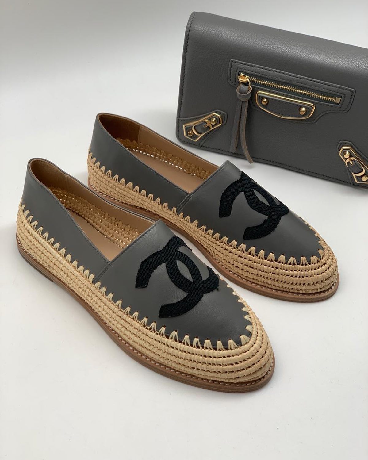 Эспадрильи Chanel LUX-32154 — это стильная и удобная женская обувь, сочетающая в себе классический дизайн и натуральные материалы. Модель выполнена в оттенке серый, что делает её универсальной и легко сочетаемой с различной одеждой. Декоративные элементы в виде узнаваемого логотипа бренда добавляют изысканности.