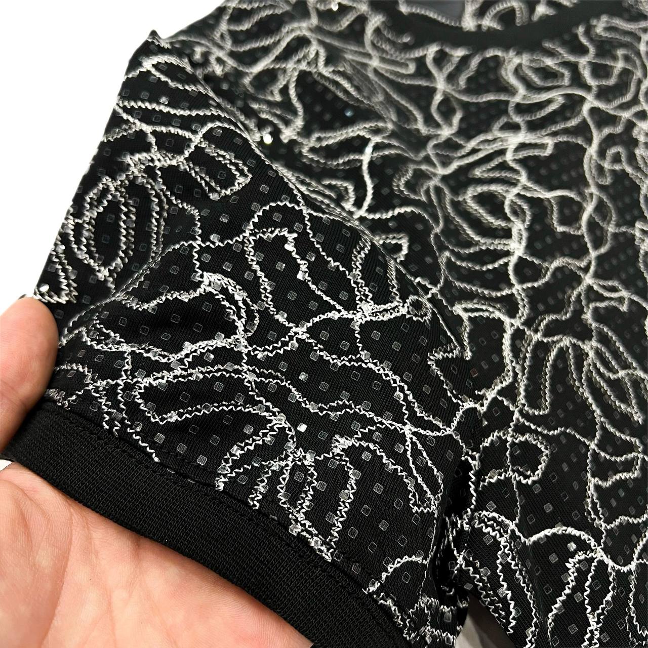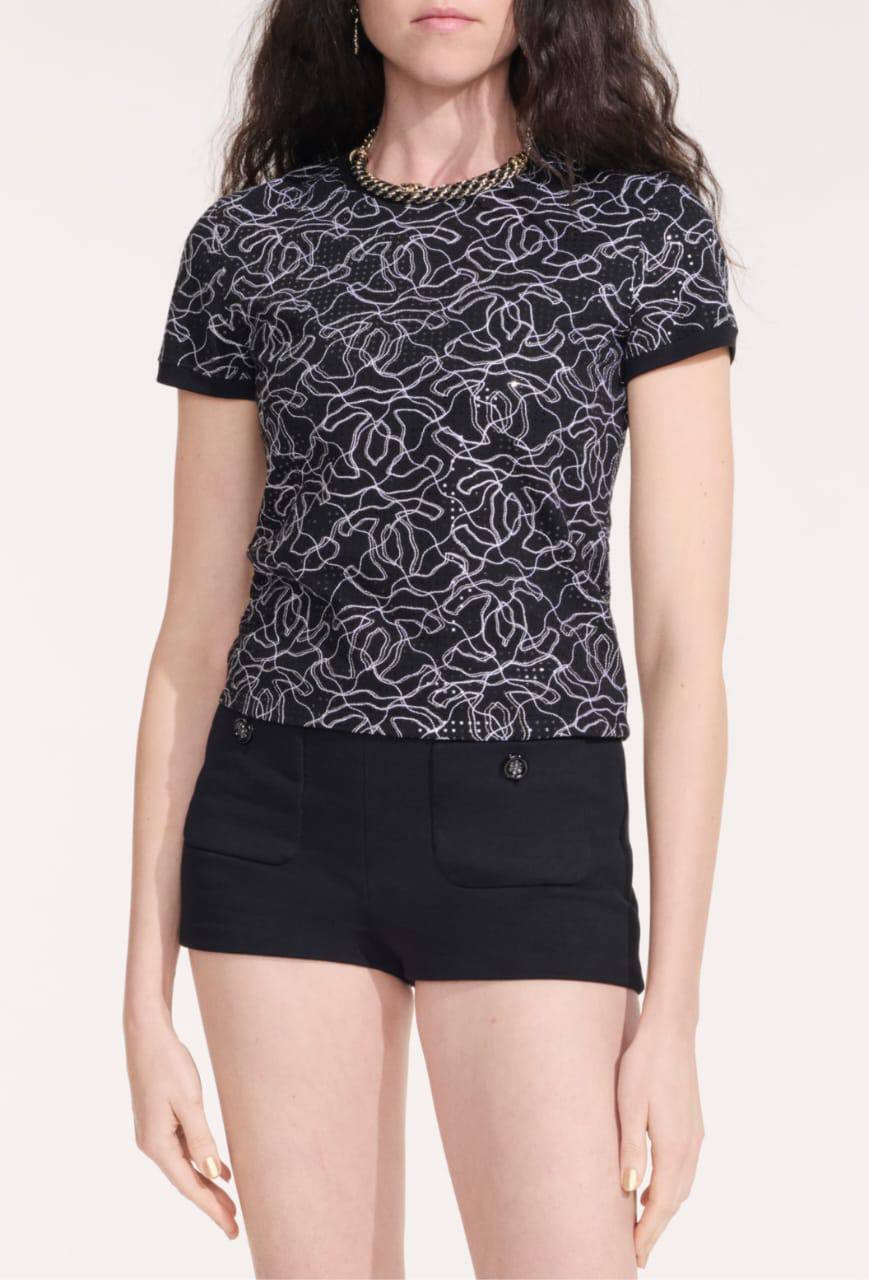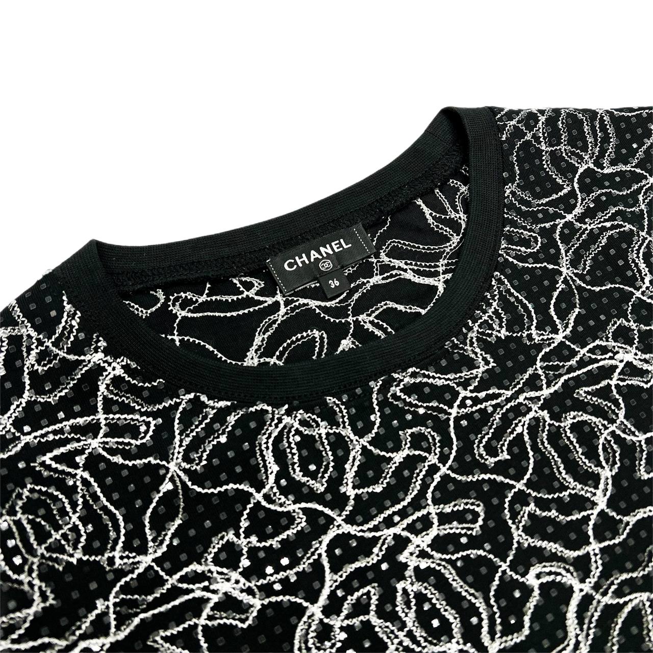 Футболка Chanel LUX-116244 представляет собой образец элегантности и стиля от известного бренда. Эта футболка выполнена в классическом стиле, сочетая в себе современный дизайн и изысканность. Её чёрный цвет подчёркивает уникальный узор, создавая привлекательный образ.