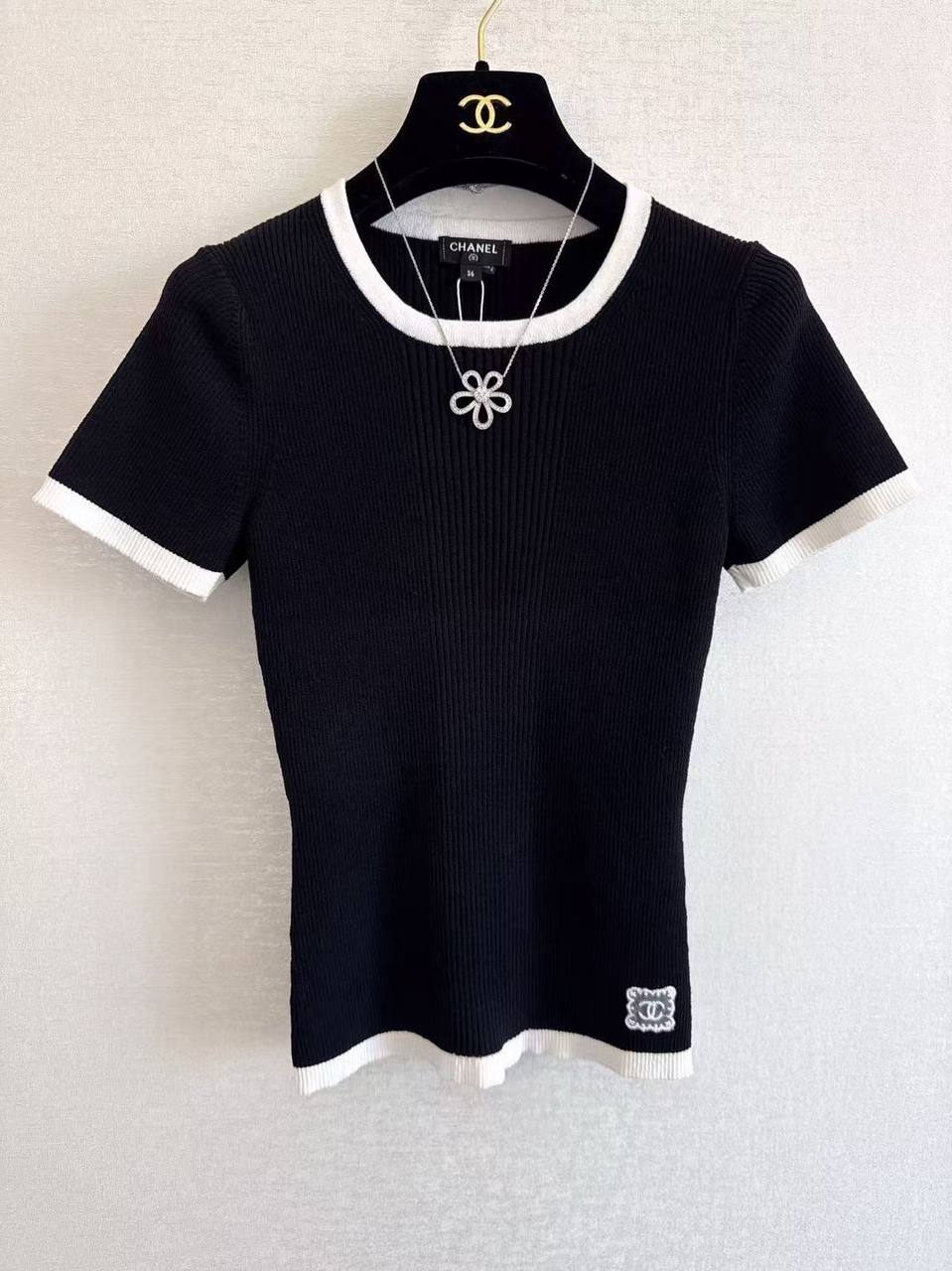 Футболка Chanel LUX-117328 представляет собой элегантный предмет гардероба. Классический стиль с черным основным цветом и контрастными белыми деталями на воротнике и рукавах. Идеально подходит для создания изысканных повседневных образов.Из-за колебаний курсов валют, просьба актуальные цены уточнять у менеджеров
