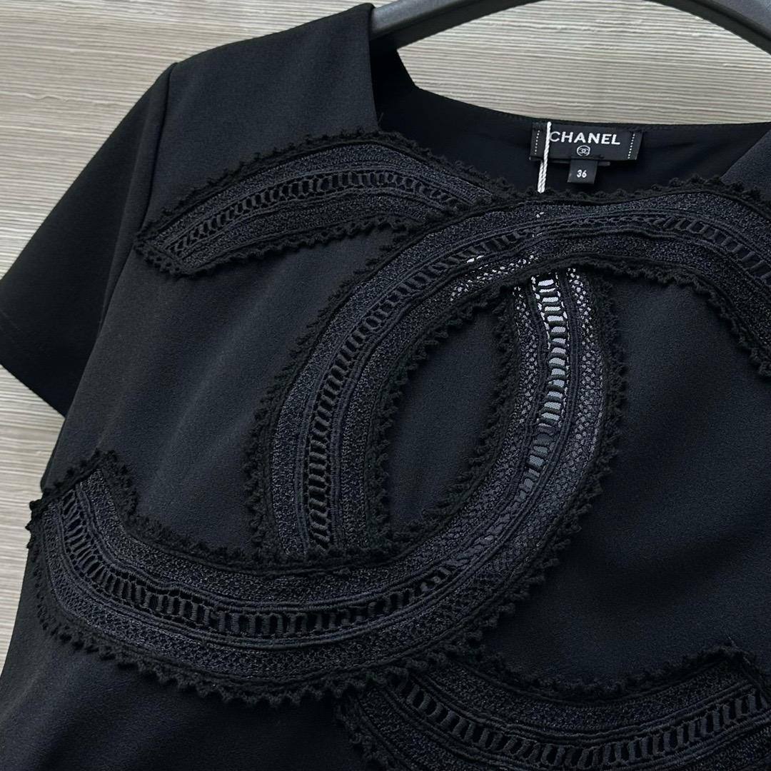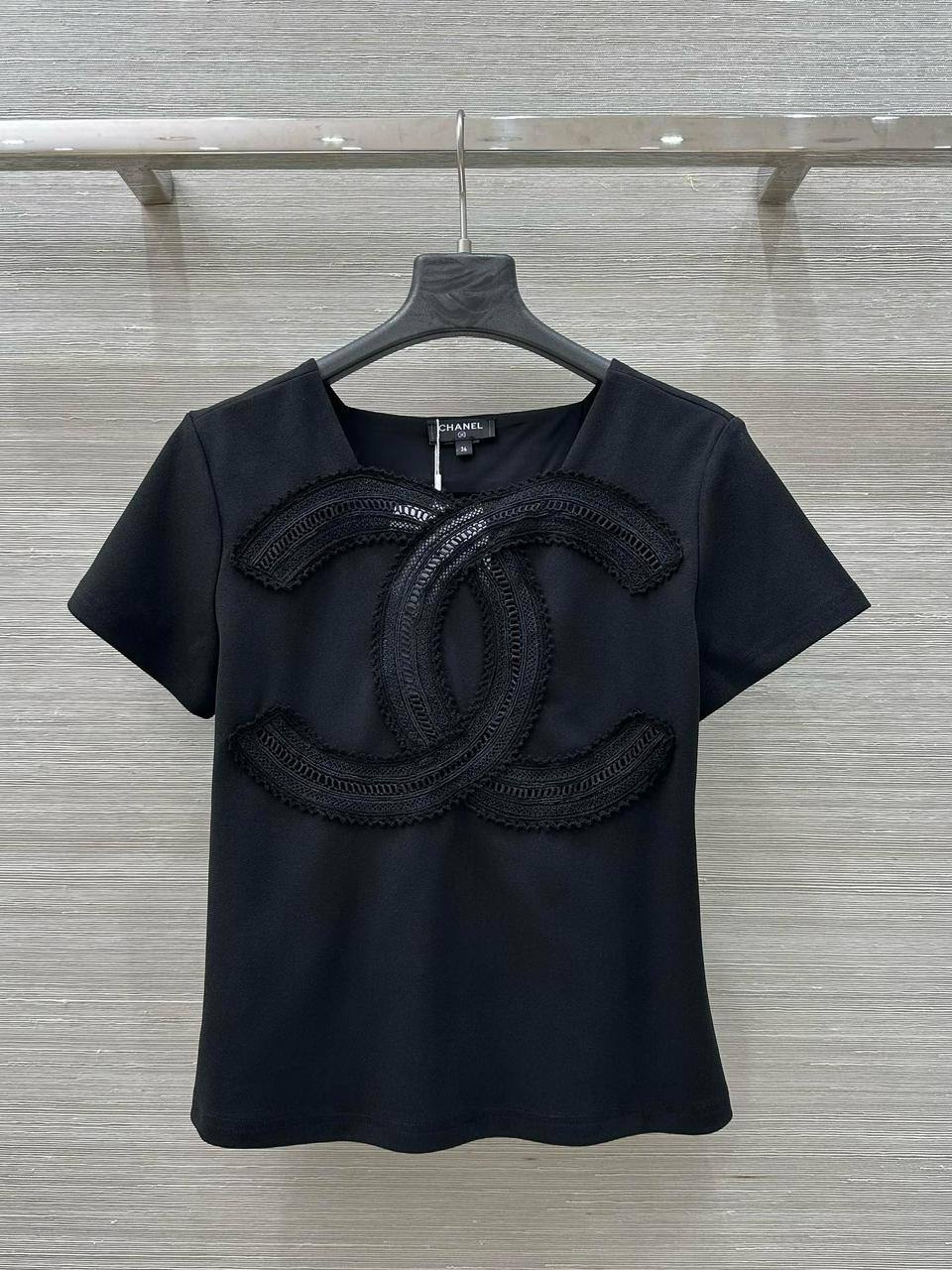 Футболка Chanel LUX-119851 представляет собой элегантную деталь гардероба, сочетающую в себе классический стиль и современный дизайн. Футболка выполнена в черном цвете, что делает ее универсальной и подходящей для различных образов. Отличительной чертой является крупная декоративная аппликация в виде логотипа бренда на передней части.
