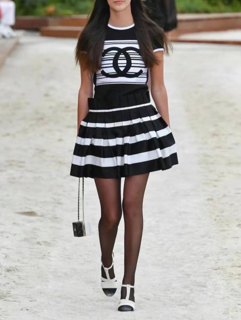 Футболу Chanel LUX-70492 – это стильная футболка от известного бренда. Футболка выполнена в черно-белой полосатой расцветке, что придает ей классический и элегантный вид. Футболка идеально подойдет для создания повседневных и модных образов.