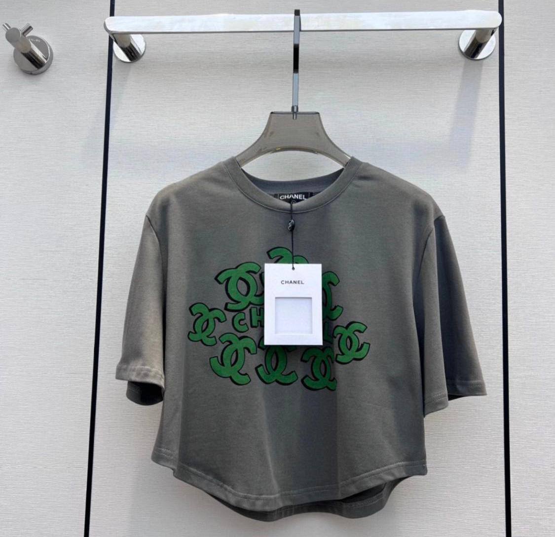 Футболка Chanel LUX-89559 — это стильная футболка от известного бренда. Серая футболка с крупным зеленым логотипом бренда, сочетает в себе классический стиль и современный дизайн. Этот предмет гардероба идеально подойдет для повседневной носки, добавляя образу элегантность и комфорт.