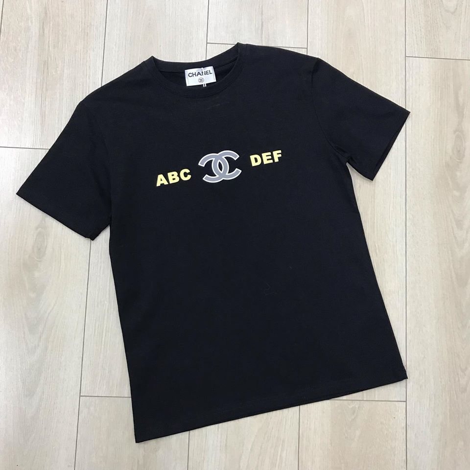 Эта женская футболка Chanel LUX-24548 выполнена в классическом черном цвете и отличается минималистичным, но узнаваемым дизайном. Принт с буквами "ABC" и "DEF", обрамляющими культовый логотип Chanel, придает модели современный и стильный вид. Футболка идеально подходит для создания непринужденных, но элегантных образов.