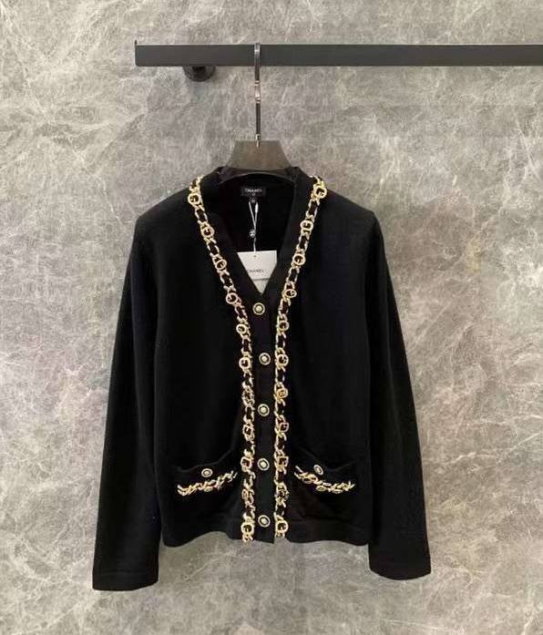 Кардиган Chanel LUX-109405 — это элегантное воплощение классического стиля. Кардиган выполнен в черном цвете с золотистой фурнитурой, создавая контраст и добавляя роскоши. Этот кардиган станет прекрасным дополнением к любому образу, подчеркивая вашу индивидуальность.