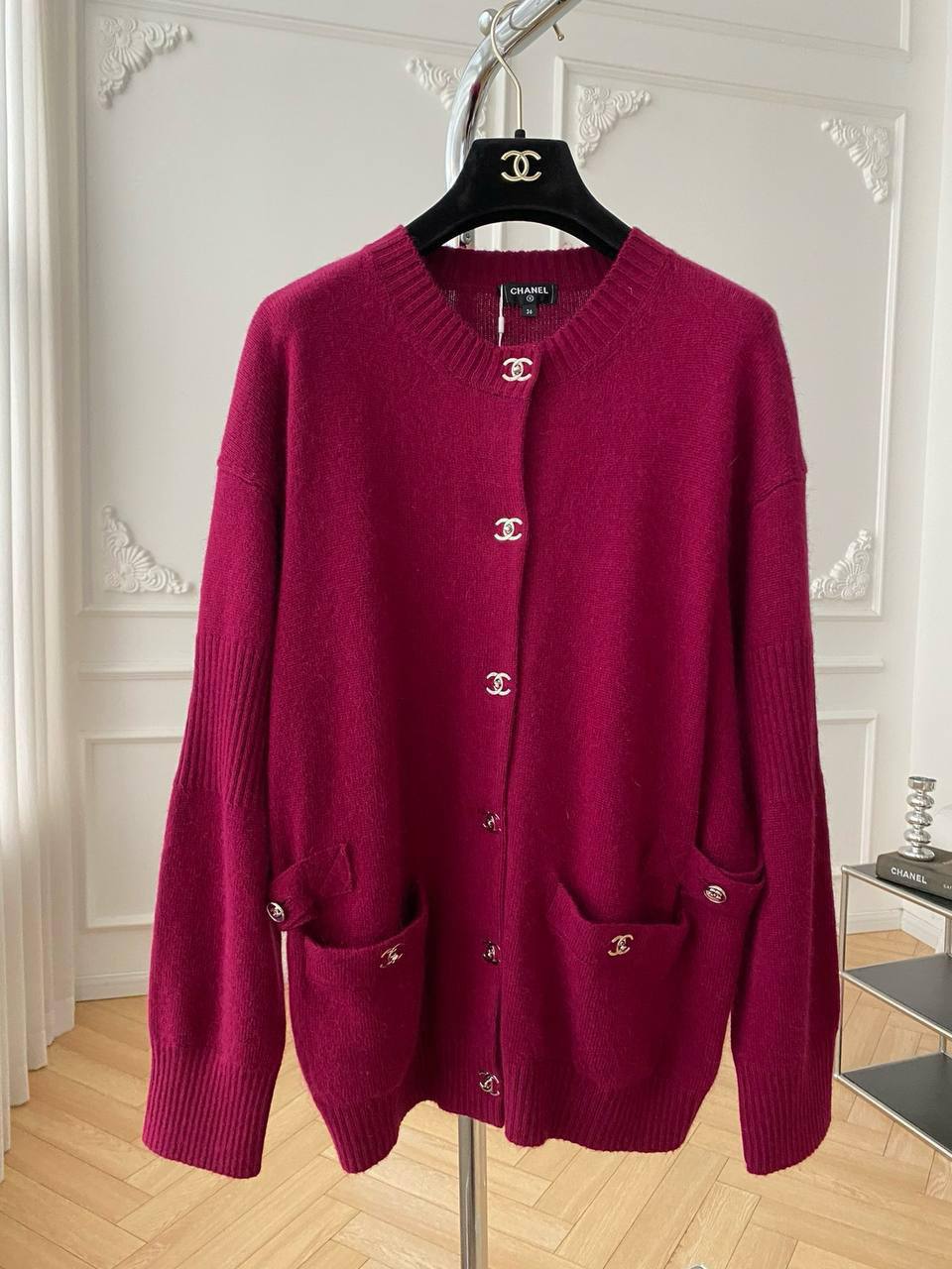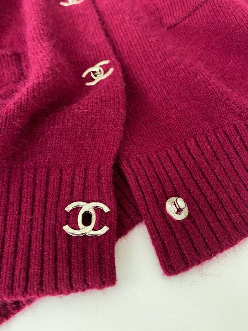 Кардиган Chanel LUX-112499 — это элегантный предмет гардероба, который сочетает в себе стиль и комфорт. Кардиган насыщенного бордового цвета, с круглым вырезом и удобной посадкой, создает ощущение уюта и тепла. Этот кардиган станет прекрасным дополнением к любому образу, будь то повседневный или более формальный.