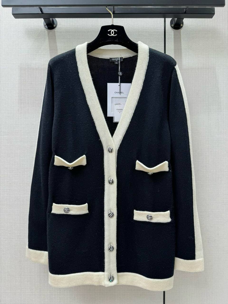 Кардиган Chanel LUX-113334 – это элегантный элемент гардероба в классическом стиле от известного бренда. Кардиган выполнен в сочетании черного и белого цветов, что придает ему изысканный вид. Этот предмет одежды идеально подходит для создания стильных образов на каждый день или для особых случаев.
