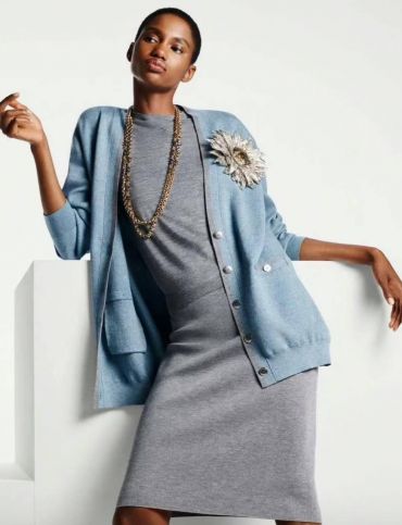 Кардиган Chanel LUX-131916 представляет собой элегантную и утонченную модель, идеально подходящую для создания женственного образа. Он сочетает в себе классический дизайн и современные акценты.