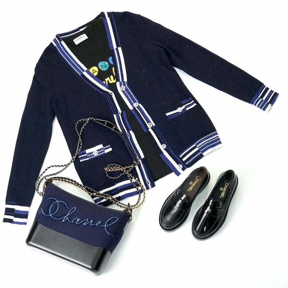 Представляем вашему вниманию элегантный женский кардиган Chanel LUX-28117. Эта модель выполнена в классическом темно-синем цвете с контрастными белыми и голубыми полосами по краям, что придает ей изысканный и узнаваемый стиль. Кардиган идеально подходит для создания как повседневных, так и более официальных образов, подчеркивая ваш безупречный вкус.