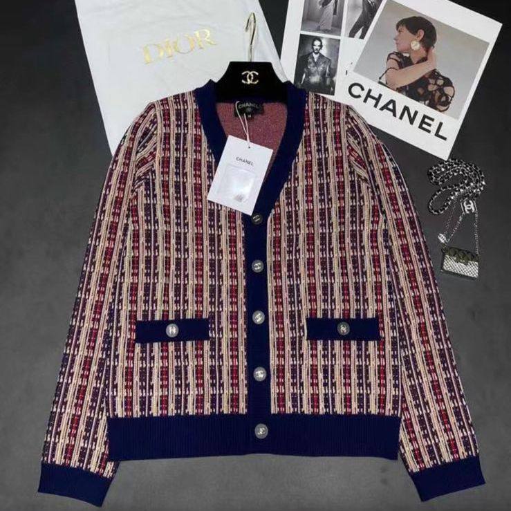 Кардиган Chanel LUX-74136 - это воплощение элегантности и стиля от известного бренда. Кардиган выполнен в классическом стиле с V-образным вырезом, что делает его универсальным для различных образов. Ткань кардигана имеет сложную текстуру и сочетает в себе несколько оттенков, создавая изысканный и неповторимый вид.