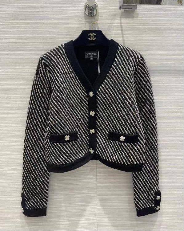 Кардиган Chanel LUX-75297 – это воплощение элегантности и стиля, представленное в классическом исполнении. Кардиган выполнен в чёрно-белой гамме с диагональным узором, с контрастной отделкой воротника, планок и карманов. Этот предмет гардероба идеально подойдёт для создания как повседневных, так и более формальных образов.
