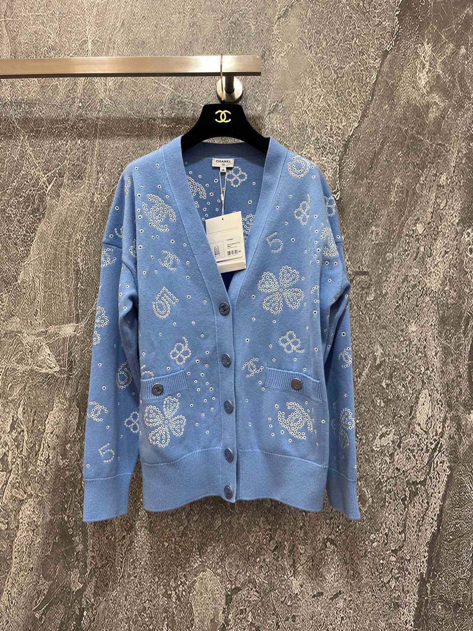 Кардиган Chanel LUX-87201 — это воплощение изысканности и стиля. Этот предмет одежды выполнен в голубом цвете с узорами. Кардиган идеально подойдет для создания как повседневных, так и более элегантных образов.